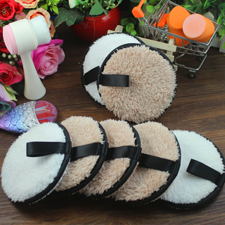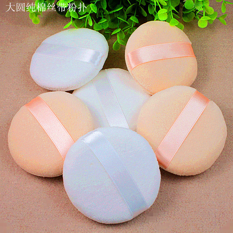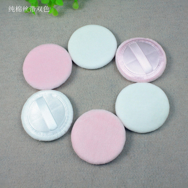 絲帶圓形純棉植絨粉撲代加工貼牌OEM/ODM