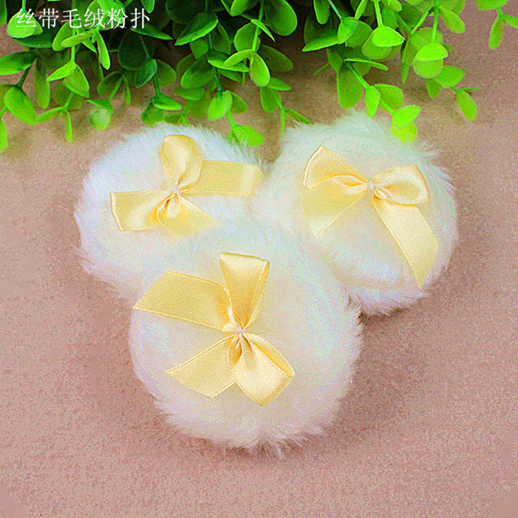 圓形絲帶蝴蝶結(jié)毛絨粉撲貼牌OEM/ODM