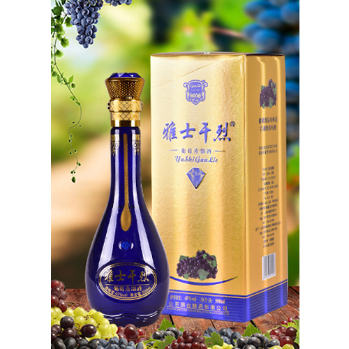 雅士干烈葡萄蒸餾酒系選用新疆優(yōu)質(zhì)新鮮葡萄,經(jīng)去梗破碎成汁,低溫發(fā)酵,采用傳統(tǒng)銅質(zhì)壺式蒸餾技術(shù)精釀而成。雅士干烈葡萄果香濃郁,口感醇正干冽,回味悠長,風(fēng)格典型獨(dú)特。雅士干烈是以葡萄為原料釀造的高端葡萄蒸餾酒,是保健養(yǎng)生、高端商務(wù)、饋贈(zèng)親朋之佳品。