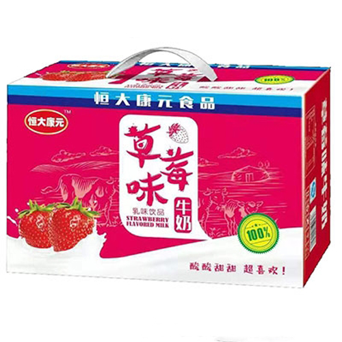 恒大康元草莓味牛奶