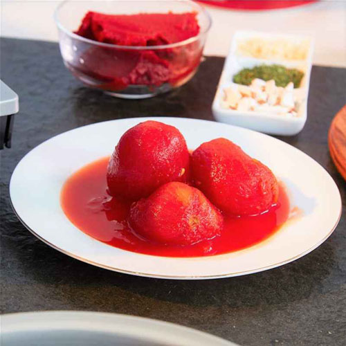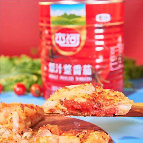選用應(yīng)季鮮番茄直灌:應(yīng)季新鮮、成熟的優(yōu)質(zhì)屯河番茄經(jīng)清洗、挑揀、燙漂、切丁/ 去皮后,浸漬在濃郁番茄原汁中經(jīng)灌裝殺菌工藝加工而成。