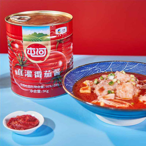 原料天然:優(yōu)選應(yīng)季新鮮、自然成熟的優(yōu)質(zhì)屯河番茄經(jīng)清洗、破碎、打漿、去皮籽、濃縮、 經(jīng)灌裝殺菌工藝加工而成。