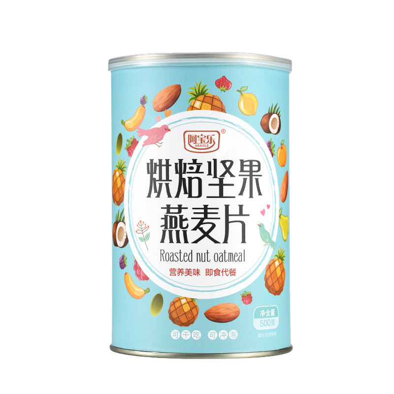 阿寶樂烘焙堅果燕麥片干吃沖飲源頭工廠 營養(yǎng)早餐懶人速食代餐即食罐裝一站式代加工