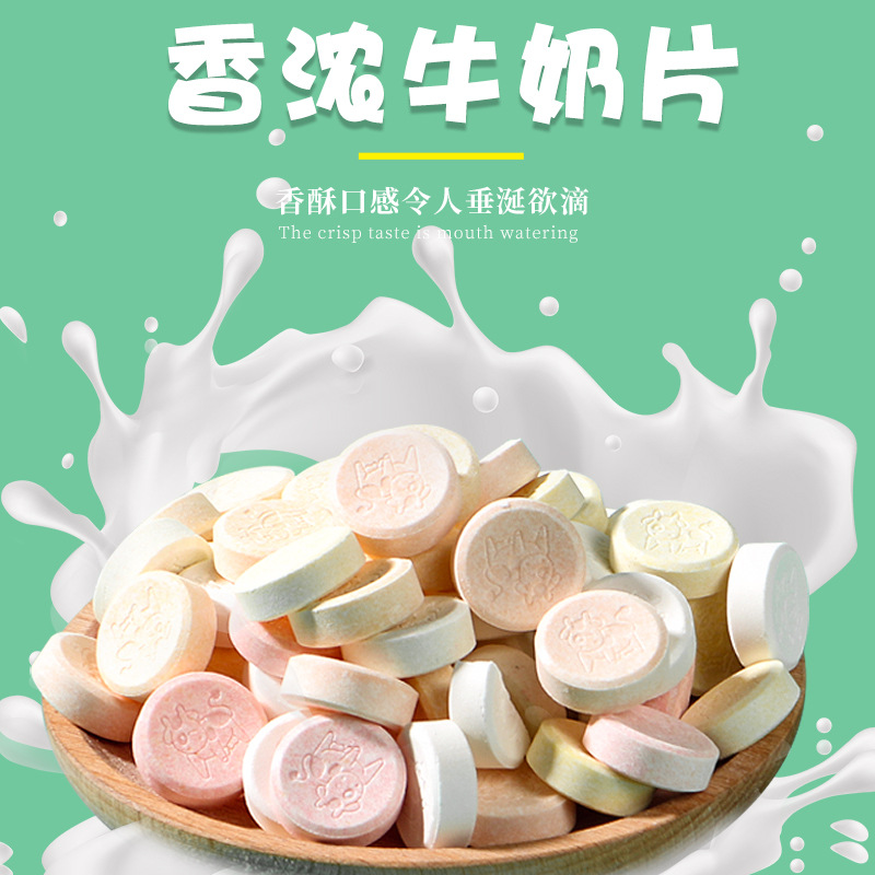 壓片糖果休閑兒童零食批發(fā)麥香草莓抹茶原味80g專業(yè)定制 袋裝干吃牛奶片糖免費打樣