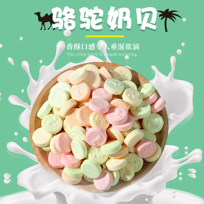 堅實型兒童休閑零食干吃奶片糖源頭工廠 散裝駱駝奶貝500g生產基地