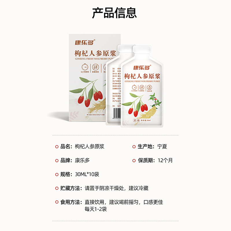 康樂多枸杞人參原漿300ml貼牌定制 枸杞人參汁
