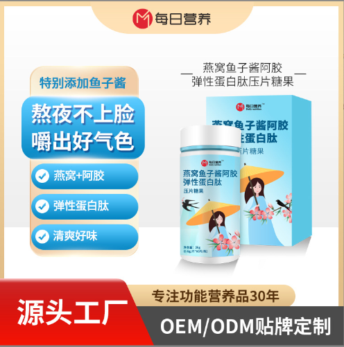魚子醬阿膠燕窩膠原蛋白肽壓片糖果代加工