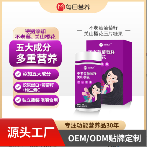 不老莓葡萄籽關(guān)山櫻花壓片糖果代加工oem貼牌
