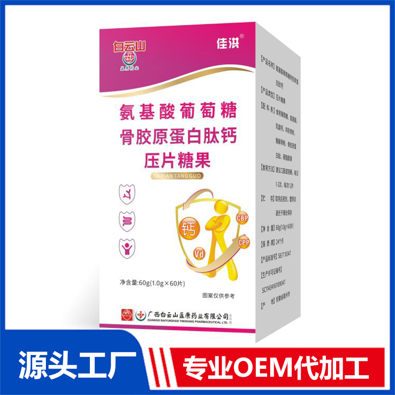氨基酸葡萄糖骨膠原蛋白肽鈣壓片糖果OEM/ODM貼牌代加工源頭廠家