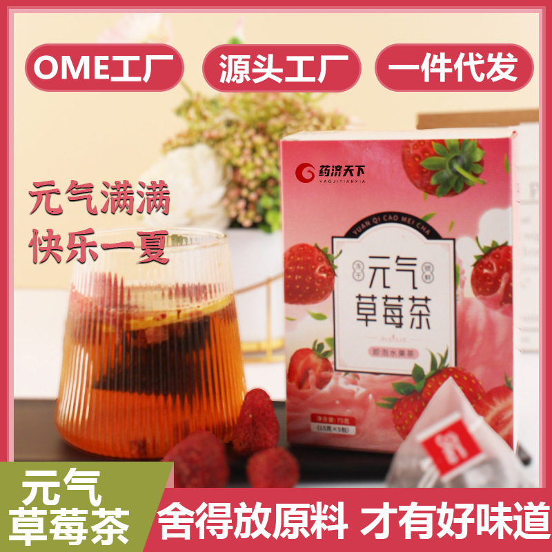 元氣草莓茶凍干草莓冰糖檸檬茶水果茶 盒裝75g泡水冷熱飲品