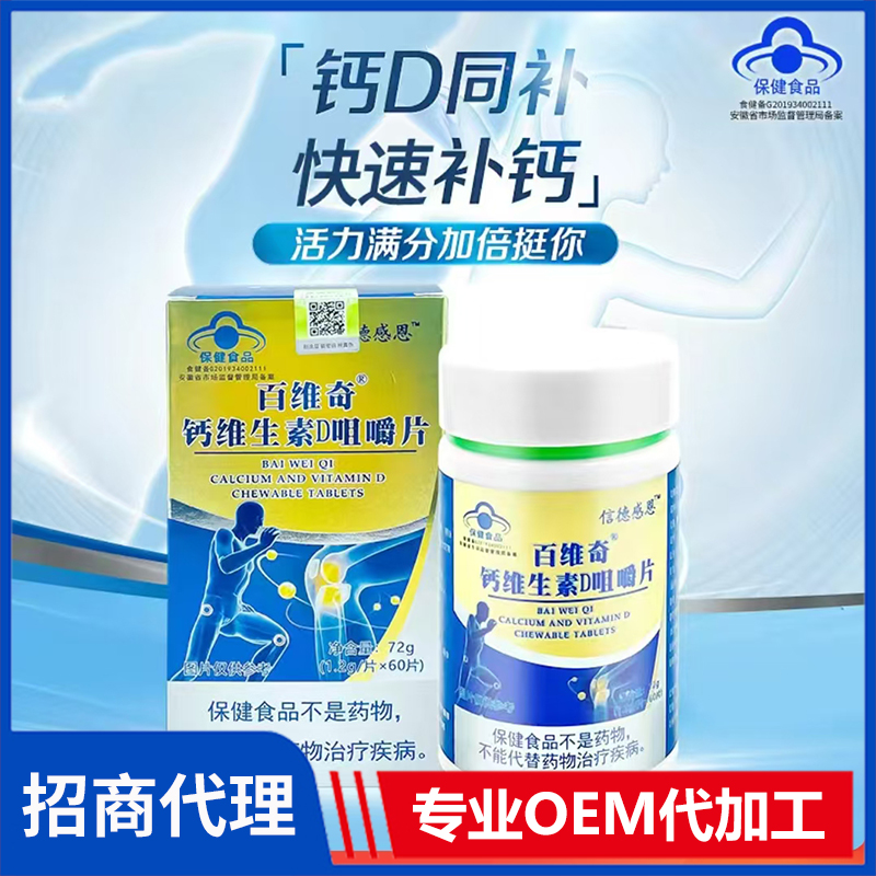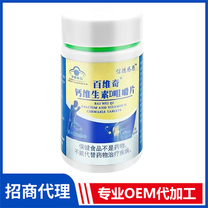 信德感恩百維奇鈣維生素D咀嚼片現(xiàn)貨批發(fā) 藍(lán)帽食品咀嚼片OEM貼牌定制代加工