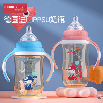 寬口徑防脹氣耐摔硅膠帶手柄奶瓶OEM代加工