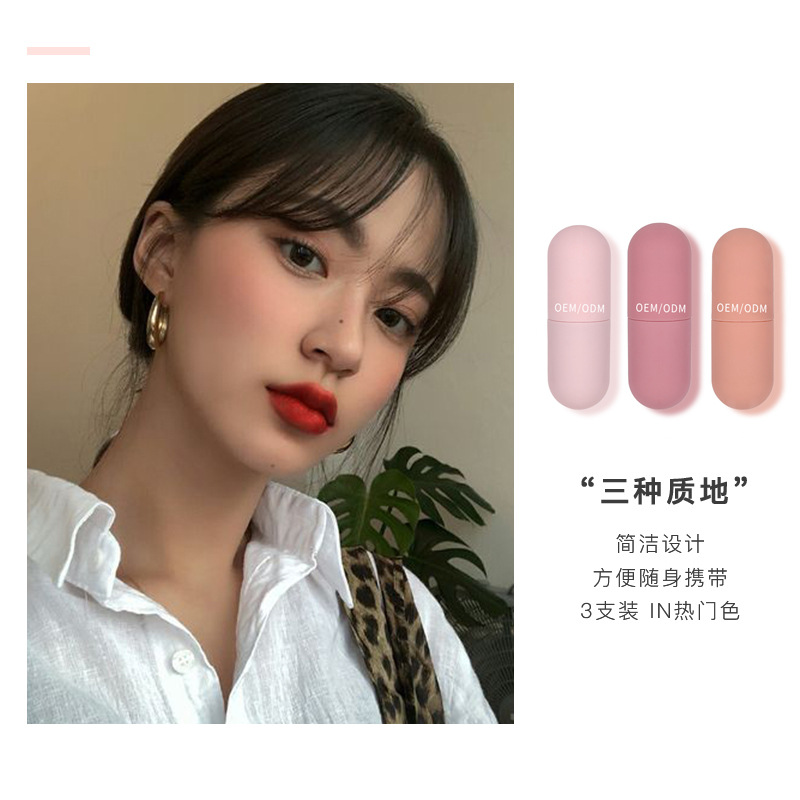 多色草莓色國貨品牌水潤白色啞光柔霧口紅代加工貼牌OEM/ODM