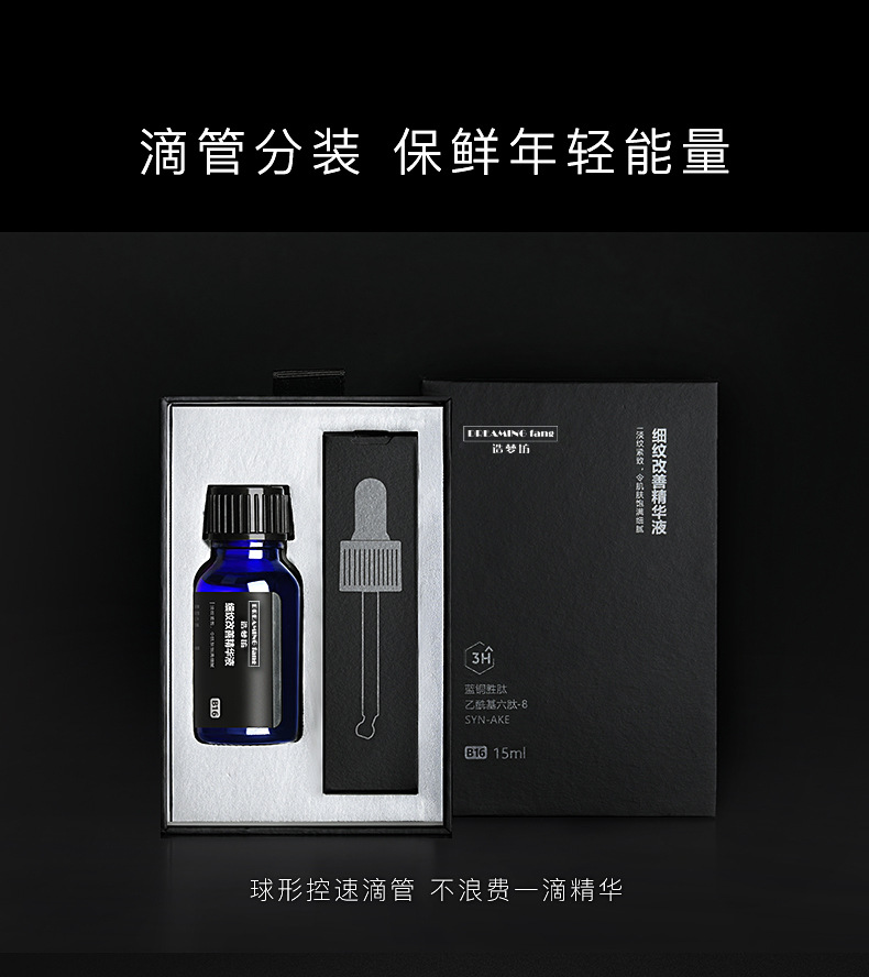 黑標(biāo)細(xì)紋改善藍(lán)銅勝肽精華液貼牌OEM/ODM