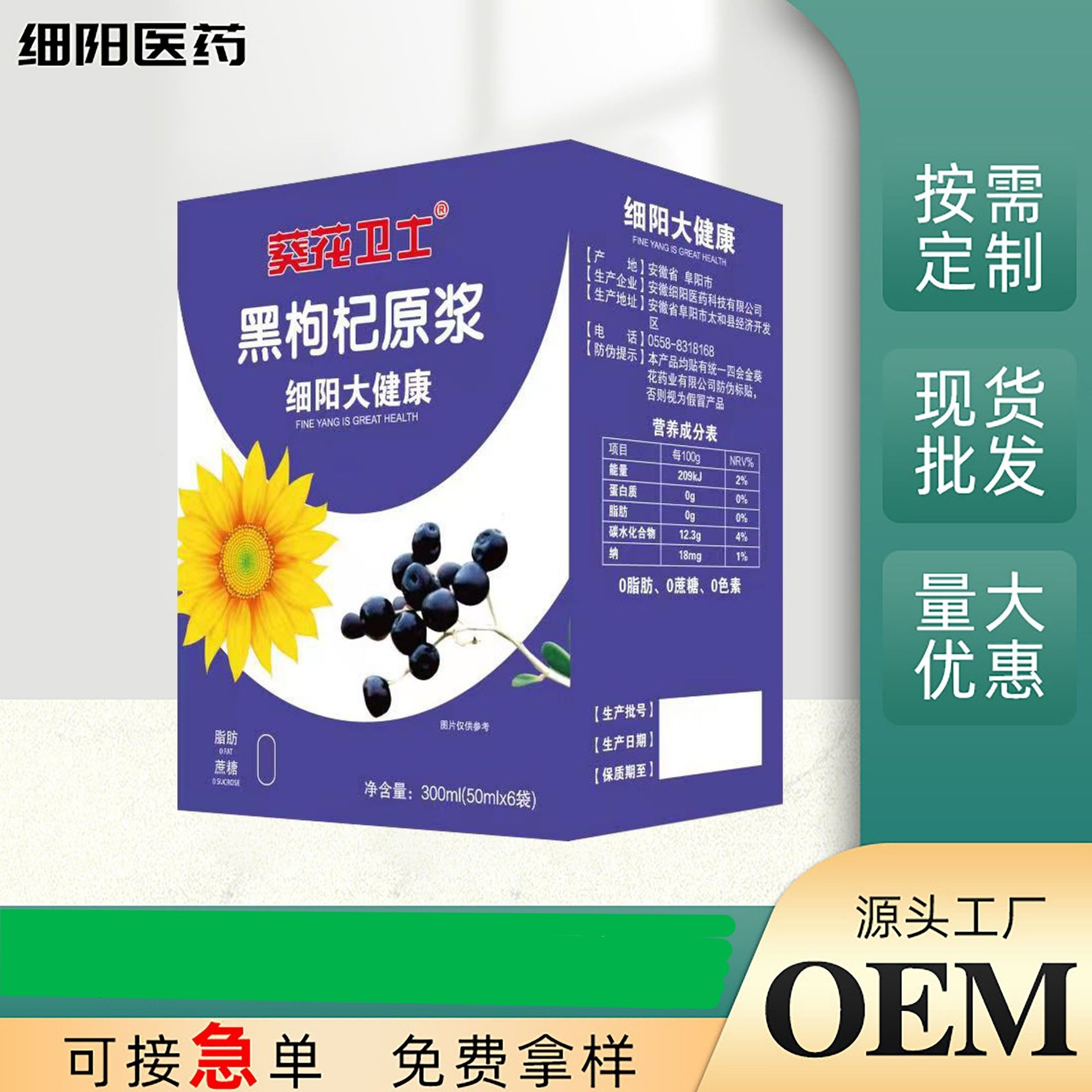 專業(yè)承接黒枸杞原漿OEM代加工,源頭工廠提供oem貼牌代加工黒枸杞原漿價(jià)格行情...,安徽細(xì)陽(yáng)醫(yī)藥科技有限公司可按照客戶要求為客戶免費(fèi)設(shè)計(jì)產(chǎn)品配方并進(jìn)行打樣??梢詭涂蛻舸鸀椴少?gòu)包裝材料。成品上市后,可為客戶提供產(chǎn)品銷售的建議及方案!