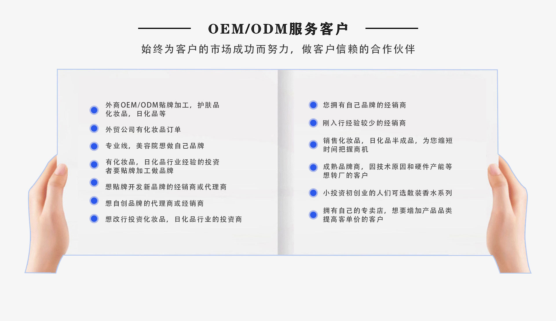 廣州伊尚美化妝品有限公司,廣州伊尚美化妝品有限公司專業(yè)從事化妝品OEM/ODM定制、產(chǎn)品策劃、文案設(shè)計(jì)、貼牌加工生產(chǎn)為一站式服務(wù)的化妝品公司專注于各種類面膜及中高檔化妝品品牌及半成品的OEM/ODM加工及品牌的區(qū)域代理、批發(fā)、銷售,并且通過了國家生產(chǎn)質(zhì)量認(rèn)證,完善的質(zhì)量管理和嚴(yán)格的檢測系統(tǒng),確保最終產(chǎn)品的質(zhì)量,從事多年大型企業(yè)和知名化妝品企業(yè)的技術(shù)管理團(tuán)隊(duì)專業(yè)化的服務(wù)為你提供優(yōu)質(zhì)產(chǎn)品、優(yōu)質(zhì)服務(wù),始終堅(jiān)持“品質(zhì)決定生存”的原則嚴(yán)把質(zhì)量關(guān),確保產(chǎn)品質(zhì)量?,F(xiàn)公司在全國各地展開大規(guī)模的品牌推廣活動和產(chǎn)品促銷活動,造就了強(qiáng)大優(yōu)勢。讓品牌深入人心,廣為信賴。 廣州伊尚美化妝品有限公司的誠信、實(shí)力和產(chǎn)品質(zhì)量獲得業(yè)界的認(rèn)可。歡迎各界朋友蒞臨參觀、指導(dǎo)和業(yè)務(wù)洽談。