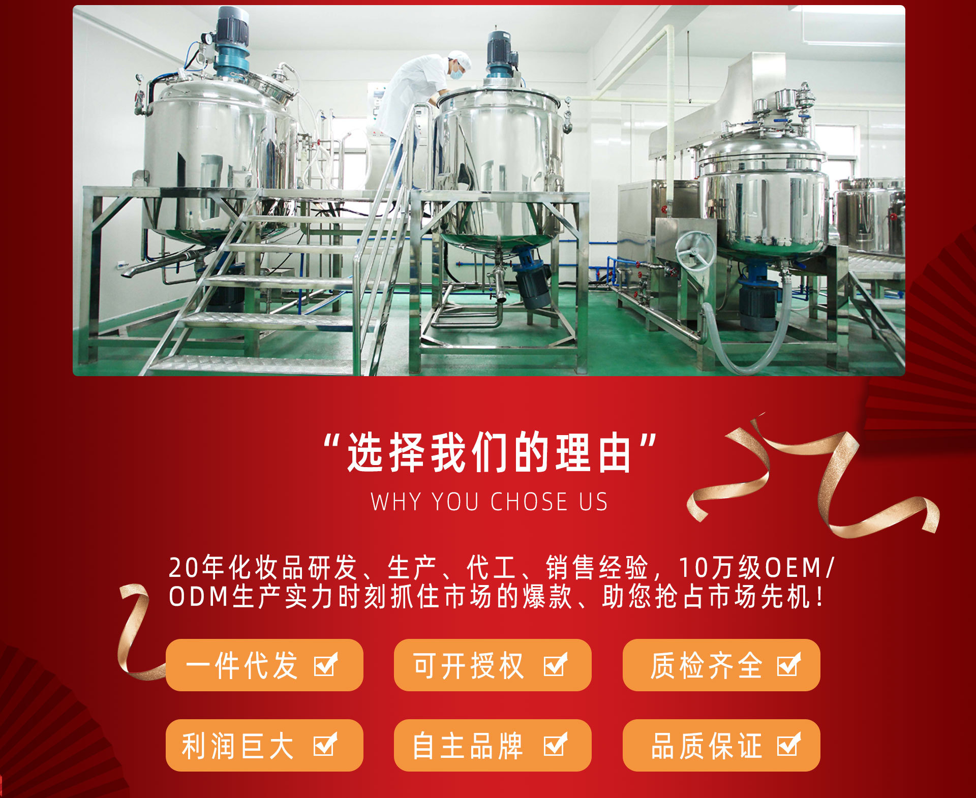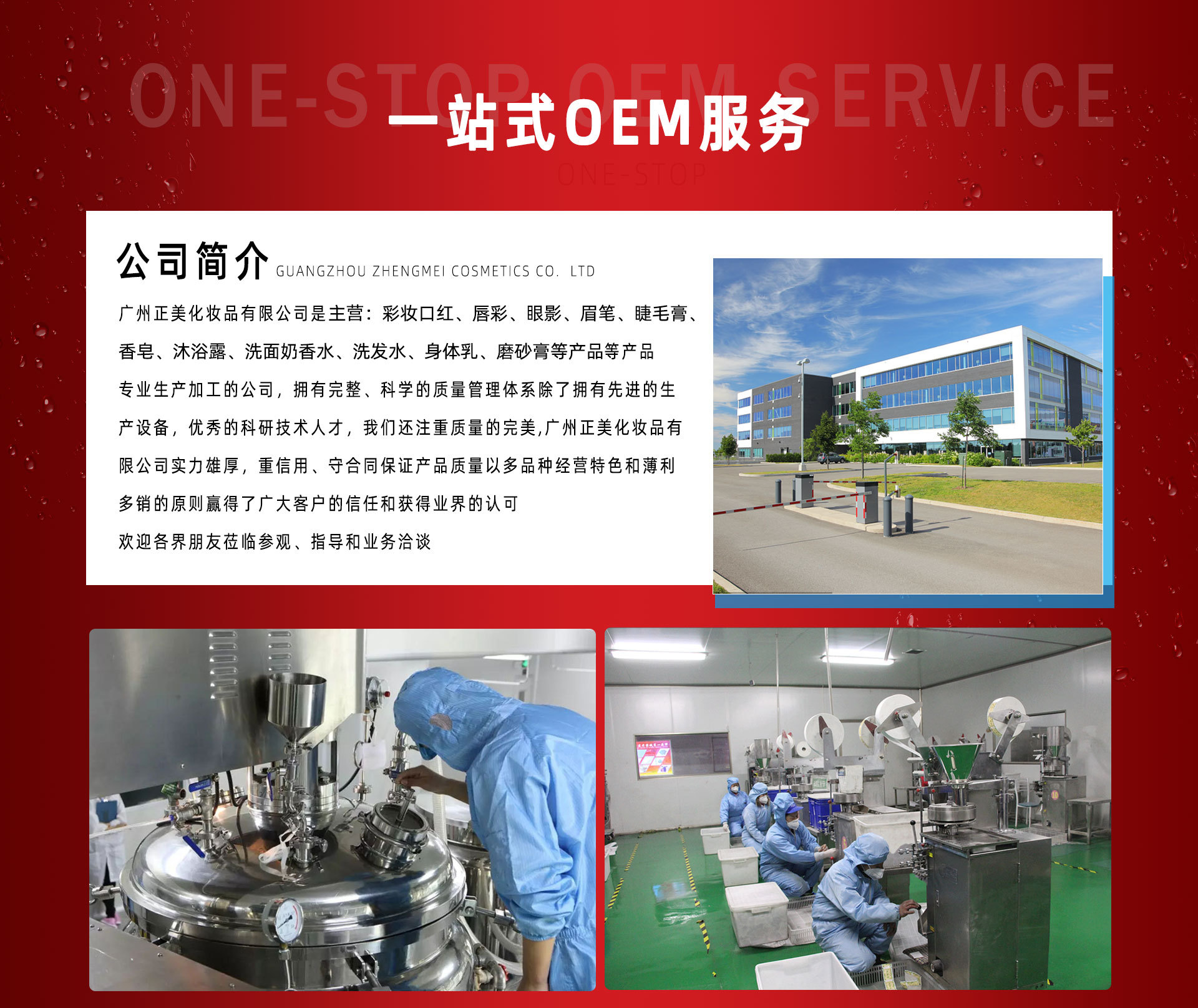 廣州正美化妝品有限公司是香皂、沐浴露、洗面奶、香水、洗發(fā)水、身體乳、磨砂膏、香皂、沐浴露、洗面奶、香水、洗發(fā)水、身體乳、磨砂膏等產(chǎn)品專業(yè)生產(chǎn)加工的公司,擁有完整、科學的質(zhì)量管理體系。除了擁有先進的生產(chǎn)設(shè)備,優(yōu)秀的科研技術(shù)人才,我們還注重質(zhì)量的完美廣州正美化妝品有限公司實力雄厚,重信用、守合同、保證產(chǎn)品質(zhì)量,以多品種經(jīng)營特色和薄利多銷的原則,贏得了廣大客戶的信任和獲得業(yè)界的認可。歡迎各界朋友蒞臨參觀、指導和業(yè)務洽談