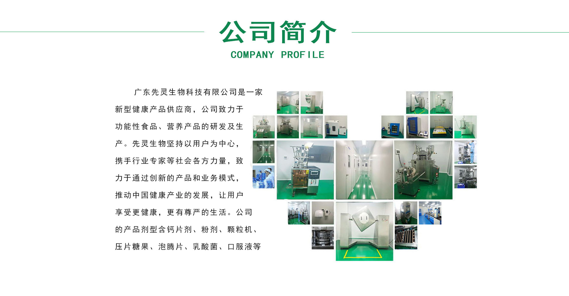 廣東先靈生物科技有限公司是一家為客戶提供關(guān)于食品和保健食品研發(fā)及生產(chǎn)加工服務(wù)的現(xiàn)代化企業(yè)。公司致力于現(xiàn)代化的食品和保健食品的科技開發(fā)工作,是集科研開發(fā)、產(chǎn)品制造、市場銷售、委托加工的高新科技綜合企業(yè)。建立了高水準(zhǔn)的研發(fā)團(tuán)隊(duì),具有數(shù)名資深工程師、并在行業(yè)內(nèi)專家的指導(dǎo)下,用科學(xué)的配方、先進(jìn)的工藝、可靠的設(shè)備、GMP的標(biāo)準(zhǔn)、嚴(yán)格的質(zhì)量要求來控制產(chǎn)品的生產(chǎn)。公司的產(chǎn)品劑型涵蓋片劑、粉劑、口服液、顆粒劑、壓片糖果、固體飲料、泡騰片及益生菌固體飲料等多個(gè)劑型