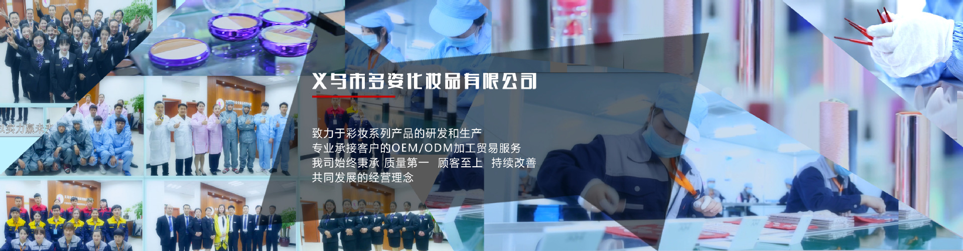 浙江省義烏市多姿化妝品有限公司成立于2009年,經(jīng)過多年的持續(xù)發(fā)展,從一家小型的貿(mào)易公司,發(fā)展成了現(xiàn)有的規(guī)模,公司目前是一家集研發(fā)、生產(chǎn)、銷售為一體的專業(yè)彩類化妝品生產(chǎn)型企業(yè),現(xiàn)有員工200多人,公司座落于浙江省義烏市北苑工業(yè)園,毗鄰機場、火車站、高速路口,交通便捷。公司擁有現(xiàn)代化的生產(chǎn)廠房,高標(biāo)唯無菌實驗室和從國外引進的國際先進水平的生產(chǎn)和檢測設(shè)備。公司現(xiàn)擁有“NEXT WELL'DOOUCI二大品牌系列化妝品。