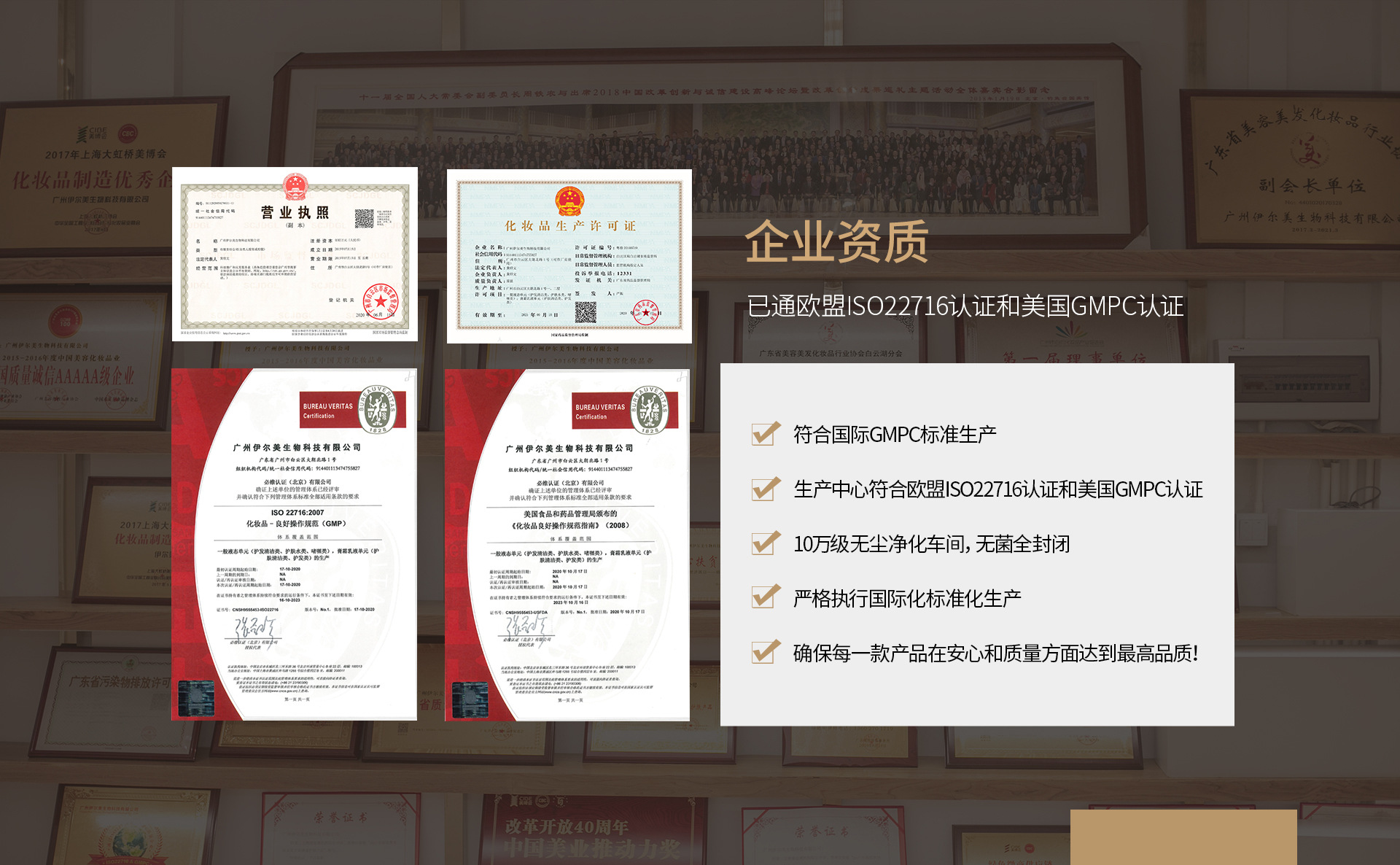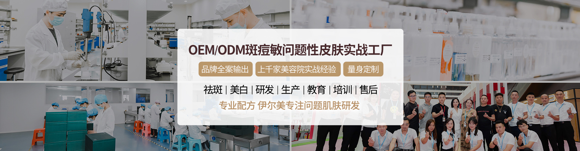 公司簡(jiǎn)介 伊爾美集團(tuán)是一家集化妝品專業(yè)策劃、研發(fā)、生產(chǎn)為一體的綜合性國(guó)際化大型企業(yè),擁有中國(guó)完整,豐富的個(gè)人護(hù)理品產(chǎn)品品類,一直堅(jiān)持以科技為依托,以品質(zhì)為核心,以時(shí)尚為靈魂來服務(wù)客戶。我司在數(shù)百家服務(wù)品牌中,不乏各大領(lǐng)域眾多耳熟能詳?shù)闹放?。且英?guó)利物浦海洋生物科技有限公司(一個(gè)在引領(lǐng)海外技術(shù)潮流的英國(guó)),伊爾美生物個(gè)人護(hù)理品聯(lián)合開發(fā)中心(一個(gè)在擁有巨大市場(chǎng)需求的中國(guó)大陸),先后成立。兩個(gè)開發(fā)中心遙相呼應(yīng),充分、深刻、精準(zhǔn)地把握著海內(nèi)外美妝風(fēng)向的脈搏。 伊爾美集團(tuán)廣州分公司 廣州伊爾美生物科技有限公司廠房占地總面積2萬平方米,生產(chǎn)車間按照高潔凈凈化生產(chǎn)車間國(guó)際化生產(chǎn)藥品的標(biāo)準(zhǔn)構(gòu)建,且率先通過ISO9001:2008國(guó)際質(zhì)量管理體系、歐盟GMPC、ISO22716化妝品良好生產(chǎn)規(guī)范等認(rèn)證。配合卓越的生產(chǎn)管理,15條流水線?!皟蓚€(gè)研發(fā)中心”的鮮明格局在中國(guó)美妝OEM/ODM領(lǐng)域中別樹一幟
