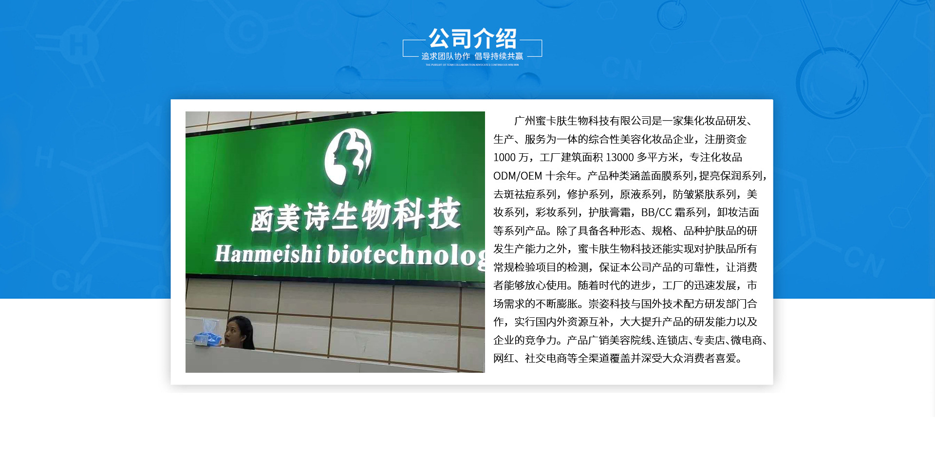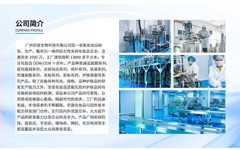 廣州蜜卡膚化妝品有限公司是護(hù)膚品、原料等產(chǎn)品專業(yè)生產(chǎn)加工的公司,擁有完整、科學(xué)的質(zhì)量管理體系。廣州蜜卡膚化妝品有限公司的誠信、實(shí)力和產(chǎn)品質(zhì)量獲得業(yè)界的認(rèn)可。歡迎各界朋友蒞臨參觀、指導(dǎo)和業(yè)務(wù)洽談。