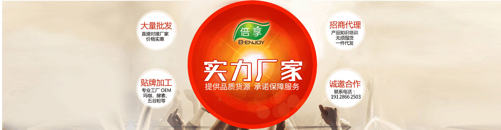 廣州倍享生物科技有限公司是全國各大知名品牌、健康連鎖——健康食品貼牌廠家。依托于浙江大學的技術力量,具有強大的產(chǎn)品研發(fā)、生產(chǎn)能力。品種類型包括膏方膏滋,片劑、口服液、粉劑、代餐粉、花茶、燕窩、代餐棒、餅干、糕點、果凍、糖果、水果制品,蜂產(chǎn)品等系列產(chǎn)品,具有國際先進水平。合作品牌涵蓋全國知名品牌:綠瘦、五谷磨坊、潘高壽、南京同仁堂、謝怡、燕之典等