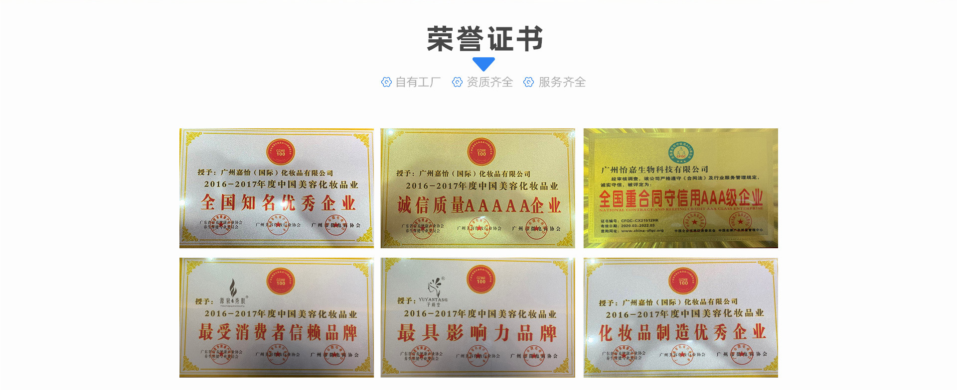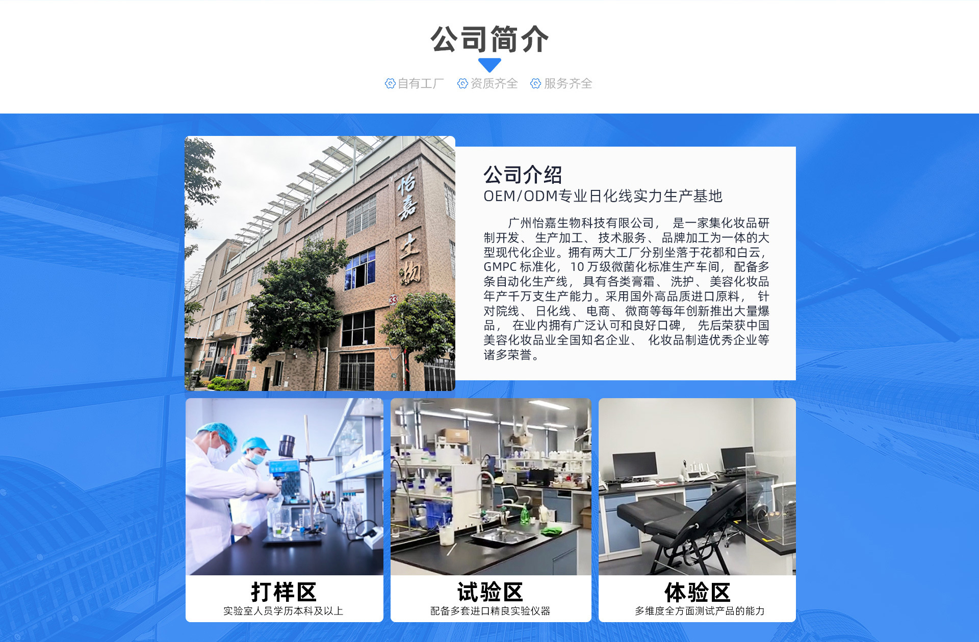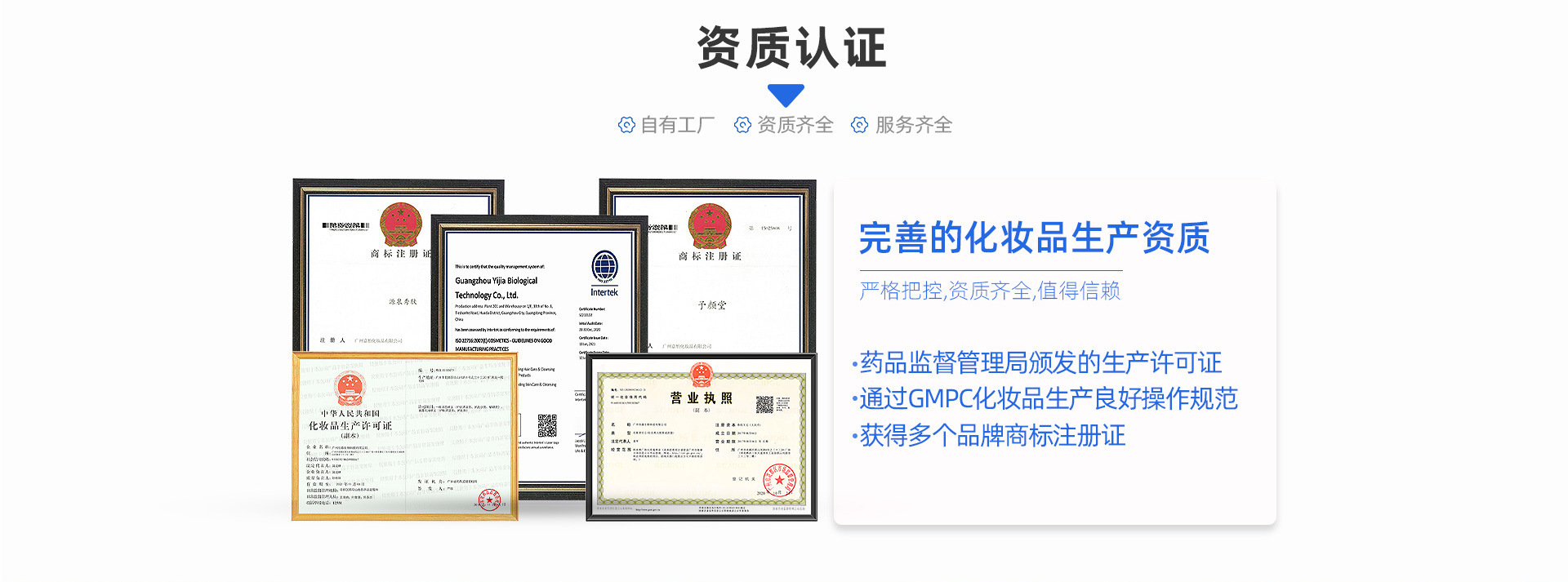 廣州怡嘉生物科技有限公司,是一家集化妝品研制開發(fā)、生產(chǎn)加工、技術服務、品牌加工為一體的大型現(xiàn)代化企業(yè)。擁有GMPC標準化,10萬級微菌化標準生產(chǎn)車間,配備多條自動化生產(chǎn)線,具有各類膏霜、洗護、美容化妝品年產(chǎn)千萬支生產(chǎn)能力。采用國外高品質進口原料,針對院線、日化線、電商、微商等每年創(chuàng)新推出大量爆品,在業(yè)內(nèi)擁有廣泛認可和良好口碑,先后榮獲中國美容化妝品業(yè)全國知名企業(yè)、化妝品制造優(yōu)秀企業(yè)等諸多榮譽。
