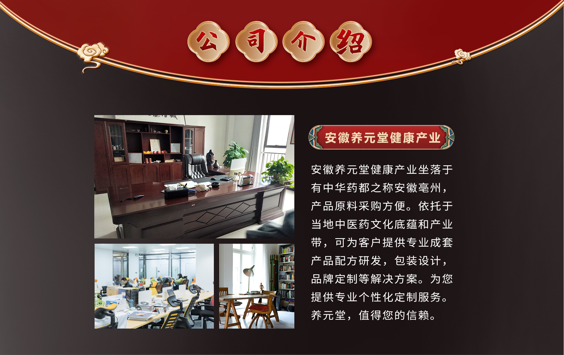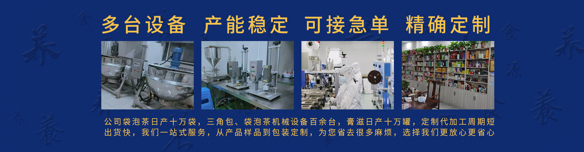 安徽養(yǎng)元堂健康產(chǎn)業(yè)公司是花草茶、膏滋方便食品等專業(yè)生產(chǎn)加工的公司,擁有完整、科學(xué)的質(zhì)量管理體系。本著誠(chéng)信、實(shí)力和產(chǎn)品質(zhì)量獲得業(yè)界的認(rèn)可。歡迎各界朋友蒞臨參觀、指導(dǎo)和業(yè)務(wù)洽談。