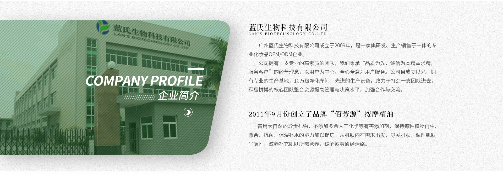 廣州藍(lán)氏生物科技有限公司 是一家生產(chǎn)銷售一體企業(yè) 公司專注按摩精油12 余年