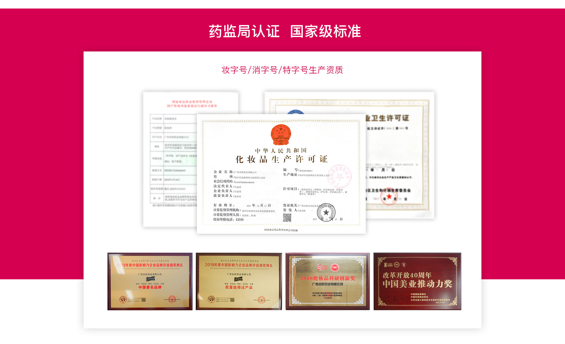 廣西名歐藥業(yè)有限公司是歐寶制藥集團(tuán)旗下的一家全資公司,是以功效性護(hù)膚品研發(fā)、生產(chǎn)、銷(xiāo)售為一體高新技術(shù)開(kāi)發(fā)的科技型企業(yè)。名歐憑借20多年制藥、醫(yī)學(xué)科研背景,專(zhuān)注天然植物萃取,功效性護(hù)膚品生物醫(yī)學(xué)美容產(chǎn)品的研發(fā)及應(yīng)用。經(jīng)過(guò)幾年創(chuàng)業(yè)與發(fā)展,發(fā)展成全國(guó)著名的功效性護(hù)膚品企業(yè)。已獲得祛斑、生發(fā)、狐臭、美胸、減肥、脫毛、防曬等特殊化妝品的國(guó)家食品藥品監(jiān)督總局審核批文。