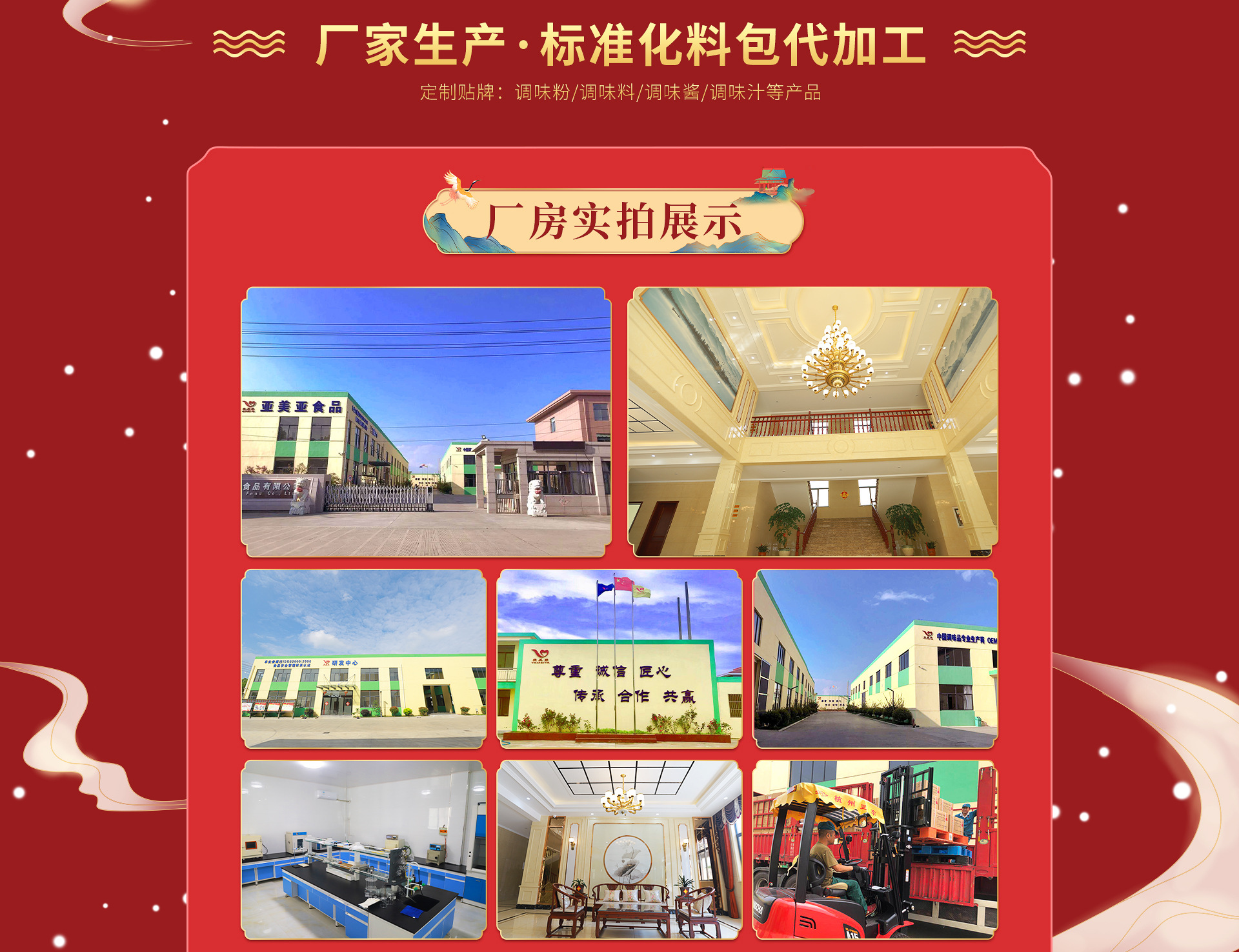亞美亞,天津市餐飲行業(yè)協(xié)會副會長單位,1989年是天海集團旗下天津亞大食品配料有限公司,于1997年重組。2016年江蘇新建20000多平米工廠,形成天 津、江蘇南北雙向服務模式。 亞美亞聘請大師級行政總廚、高校專家研發(fā)指導,是調(diào)味醬、調(diào)味粉、調(diào)味油、調(diào)味汁、香辛料、速凍水產(chǎn)品、速凍菜肴制品等餐飲后端標準化定制、代工、研發(fā)為一體的重點企業(yè),是“康師傅”(天津頂新、杭州頂益)、金鑼集團、雙匯集團、大型餐飲連鎖集團等企業(yè)指定生產(chǎn)廠家,是國內(nèi)眾多連鎖餐飲集團的戰(zhàn)略合作伙伴。 歷經(jīng)二十多年發(fā)展,亞美亞已譽滿全國,并已進入“國際精品批發(fā)中心”批發(fā)體系,工廠已通過IS022000認證,掌握了QMS生產(chǎn)模式和PDCA管理模式。天津、江蘇工廠年產(chǎn)總量約20000噸,200多家中小餐飲品牌合作伙伴,服務于全國約3000家大小門店。 定制主要產(chǎn)品: 調(diào)味醬、調(diào)味粉、調(diào)味油、調(diào)味汁、香辛料0EM