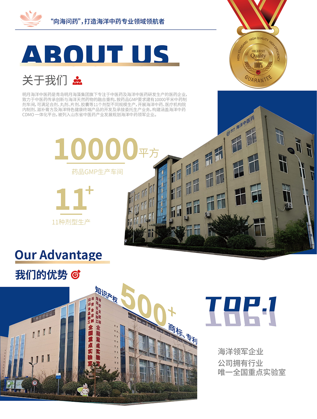 明月海洋中醫(yī)藥是青島明月海藻集團旗下專注于中醫(yī)藥及海洋中醫(yī)藥研發(fā)生產(chǎn)的醫(yī)藥企業(yè),致力于中醫(yī)藥傳承創(chuàng)新與海洋天然藥物的融合重構(gòu),按藥品GMP要求建有10000平米中藥制劑車間,可滿足合劑、丸劑、片劑、膠囊等11個劑型不同規(guī)模生產(chǎn),開展海洋中藥、醫(yī)療機構(gòu)院內(nèi)制劑、滋補膏方及海洋特色健康終端產(chǎn)品的開發(fā)及承接委托生產(chǎn)業(yè)務(wù),構(gòu)建涵蓋海洋中藥CDMO 一體化平臺,被列入山東省中醫(yī)藥產(chǎn)業(yè)發(fā)展規(guī)劃海洋中藥領(lǐng)軍企業(yè)。