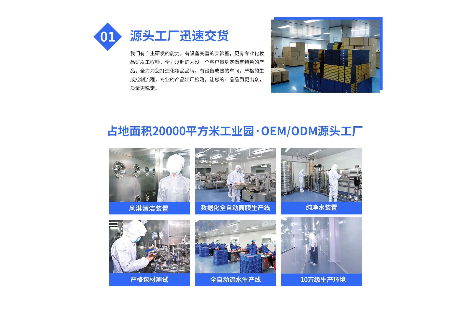工廠面積達(dá)20000方,擁有妝字號,消字號,械字號,粉單元等國際化標(biāo)準(zhǔn)的10萬級生產(chǎn)車間,同時(shí)獲得SGS公司的GMPC和ISO雙認(rèn)證,全自動化流水生產(chǎn)線18條,近500平方的國際先進(jìn)的實(shí)驗(yàn)室及20多人的工程師研發(fā)團(tuán)隊(duì),產(chǎn)品覆蓋日化線、專業(yè)線、電商、微商、直銷直播、社團(tuán)等主流渠道。 企業(yè)匯集了大批高素質(zhì)的管理、生產(chǎn)研發(fā)、營銷人才,一直以來,公司一直始終不渝堅(jiān)持以追求卓越的品質(zhì),超凡的療效做好每一款產(chǎn)品,為每一位索尚時(shí)尚與健康的顧客提供最完美極致的純植物綠色安全產(chǎn)品和高品質(zhì)的服務(wù)。