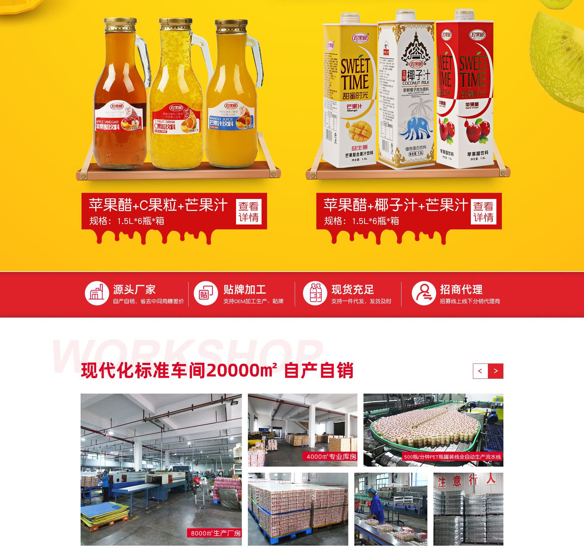 我公司為湖南省目前規(guī)模較大的高科技農業(yè)示范園——瀏陽兩型產業(yè)園重點招商企業(yè)。是一家專業(yè)從事果蔬汁飲料研發(fā)生產的現(xiàn)代化公司,毗鄰湘東明珠大圍山,大瀏高速公路橫穿而過,距長沙黃花國際機場僅50分鐘車程,交通便利,地理位置優(yōu)越。占地面積12000平方米,其中生產廠房8000平方米,現(xiàn)代化專業(yè)庫房3000平方米,研發(fā)試驗室500平方米。目前有10條全自動生產流水線,檢測化驗設施齊備、檢測手段完善,所有系列產品年生產能力均上萬噸。主要研發(fā)生產的產品有:果醬、功能性飲料、蛋白飲料(豆奶、核桃奶、花生奶等)、果汁飲料、果粒飲料、及其他飲料。在食品原輔材料儲存區(qū)域、水處理、原漿、灌裝車間等采取多重安全設施,保證產品質量在各個環(huán)節(jié)上的穩(wěn)定性和可靠性,并且引進飲品行業(yè)專業(yè)人才做產品工藝研發(fā),為高品質的產品提供了有力的保證。