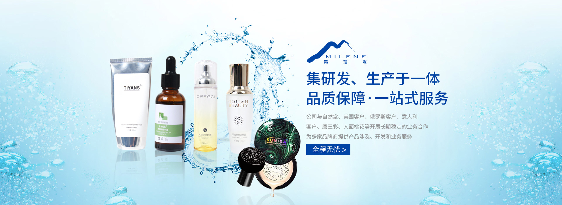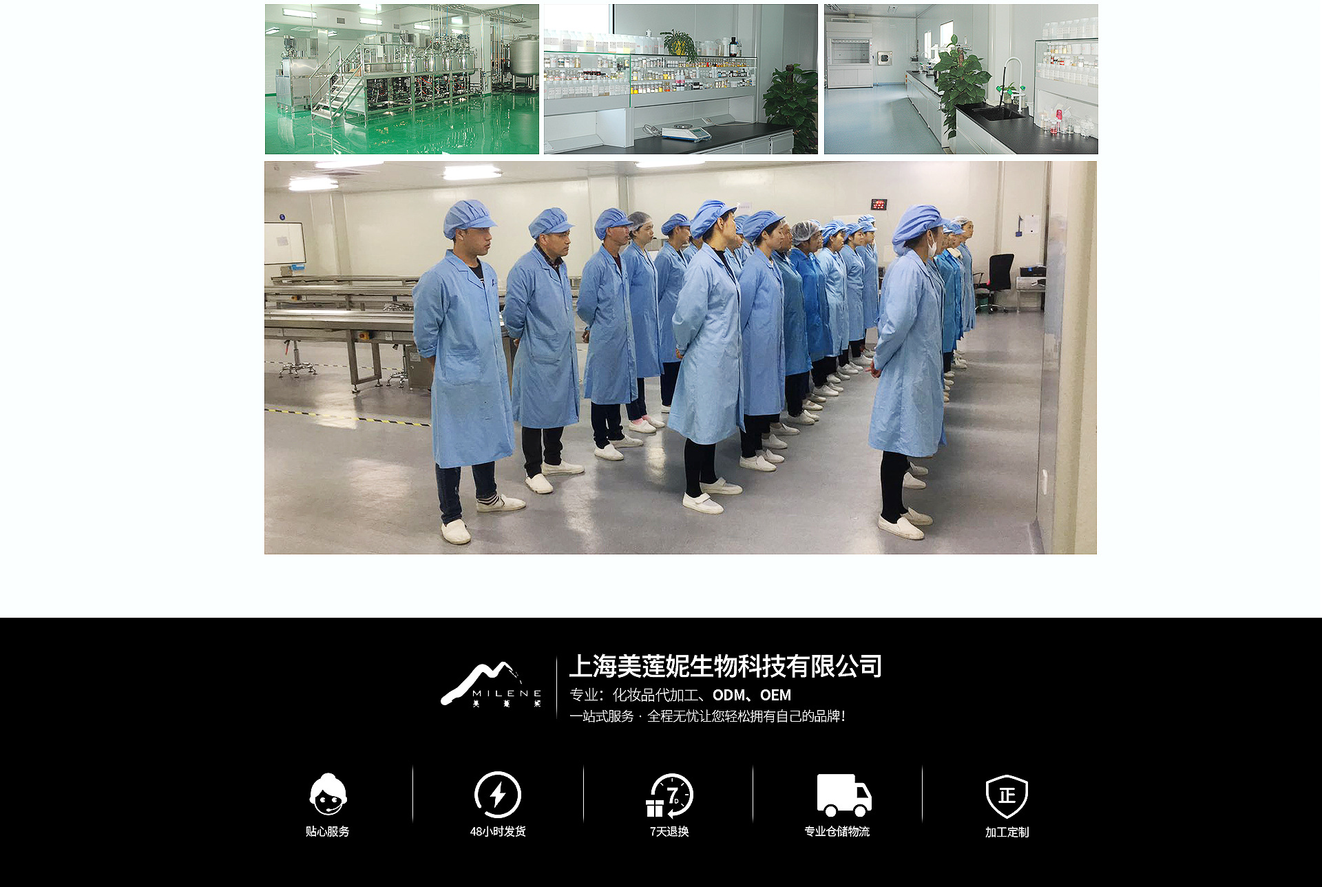 上海美蓮妮生物科技有限公司是一家擁有十多年歷史集研發(fā)、生產(chǎn)于一體的化妝品企業(yè),公司擁有現(xiàn)代化廠房10000多平方米,及符合國家GMP和22716認證的無菌生產(chǎn)車間,5條智能生產(chǎn)線,公司與自然堂、美國客戶、俄羅斯客戶、意大利客戶、唐三彩、人面桃花等開展長期穩(wěn)定的業(yè)務(wù)合作,為多家品牌商提供產(chǎn)品涉及、開發(fā)和業(yè)務(wù)服務(wù)。