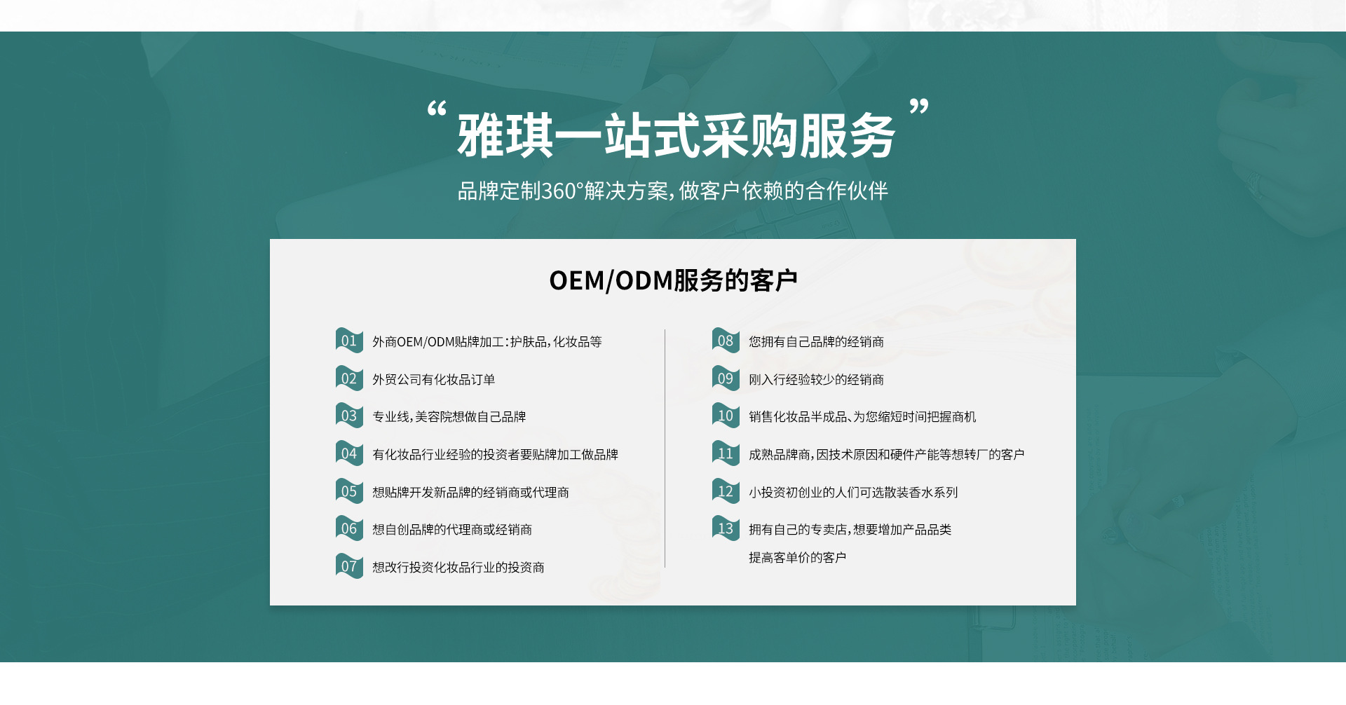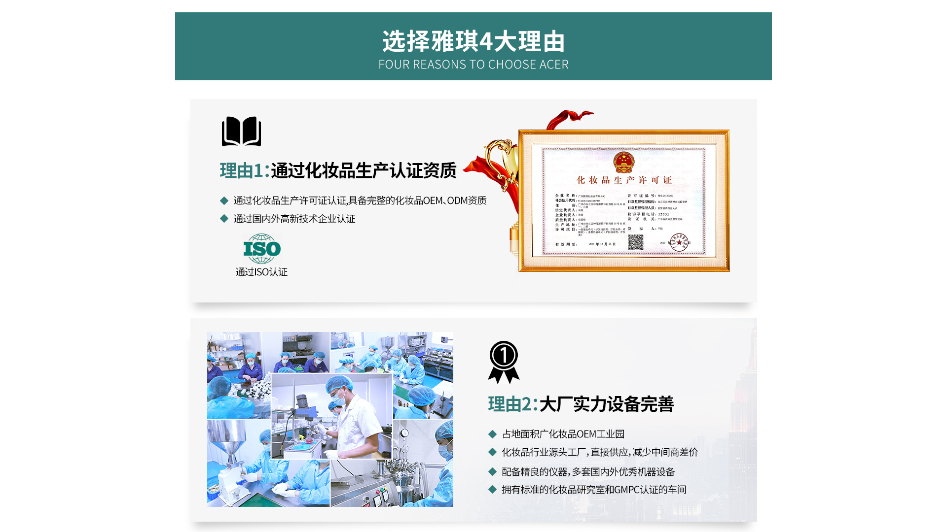 廣州雅琪化妝品有限公司成立于2018年,是一家集研發(fā)、生產(chǎn)、銷(xiāo)售于一體的專(zhuān)業(yè)護(hù)膚品化妝品生產(chǎn)加工企業(yè),可來(lái)樣加工,主營(yíng)化妝品套盒、水乳膏霜、精華液、婦科凝膠、精油等產(chǎn)品,遠(yuǎn)銷(xiāo)海內(nèi)外。2020年本公司增加了一類(lèi)醫(yī)療器械生產(chǎn)線,各種貼類(lèi)、凝膠類(lèi)、敷料等均可生產(chǎn)。