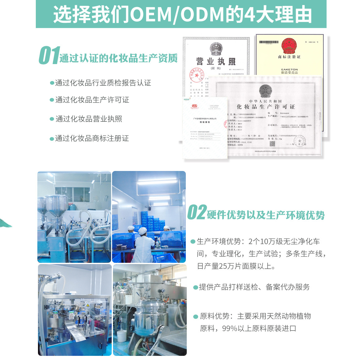 御清堂公司自主研發(fā)技術(shù)力量雄厚,擁有500個(gè)以上的成熟配方和制造工藝,以及先進(jìn)的生產(chǎn)設(shè)備和國內(nèi)一流的生產(chǎn)環(huán)境。 御清堂公司在為自主品牌服務(wù)的同時(shí),傾力研發(fā)與打造多個(gè)OEM/ODM加工品牌,在中國美妝界享有較好的聲譽(yù)。 多年來,為了實(shí)現(xiàn)不斷健全技術(shù)標(biāo)準(zhǔn)、管理標(biāo)準(zhǔn)和品牌標(biāo)準(zhǔn),為客戶提供個(gè)性化、標(biāo)準(zhǔn)化的優(yōu)質(zhì)服務(wù)。
