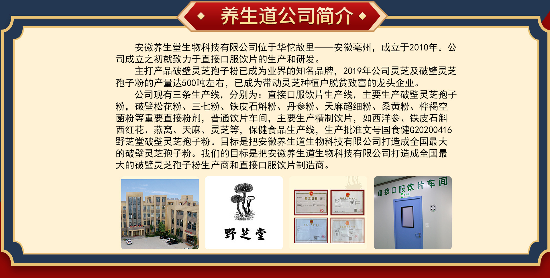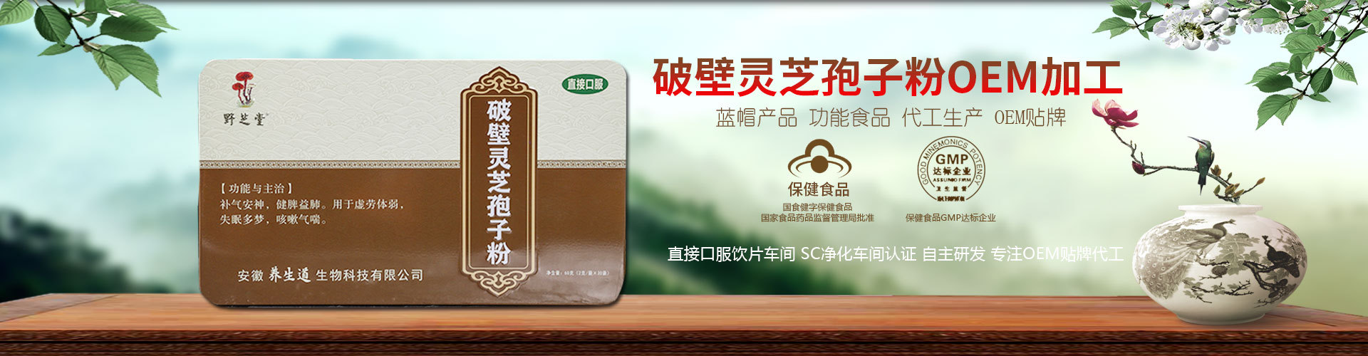安徽養(yǎng)生道生物科技有限公司,主要經(jīng)營OEM貼牌代加工,分銷代理破壁靈芝孢子粉,中藥粉,細粉等產(chǎn)品。 公司具有完整科學(xué)的質(zhì)量管理體系,經(jīng)營中藥粉類有多年經(jīng)驗,安徽養(yǎng)生道生物科技有限公司的誠信、實力和產(chǎn)品質(zhì)量獲得業(yè)界的好評,歡迎各界朋友蒞臨參觀、指導(dǎo)和業(yè)務(wù)洽談。