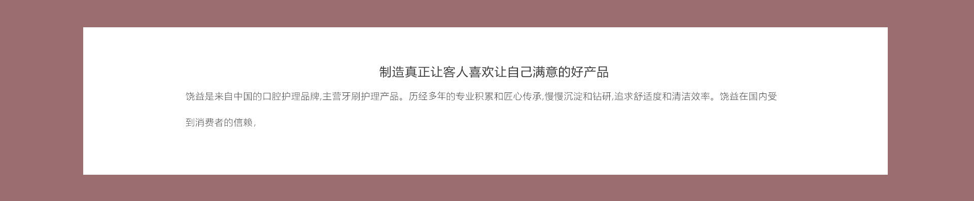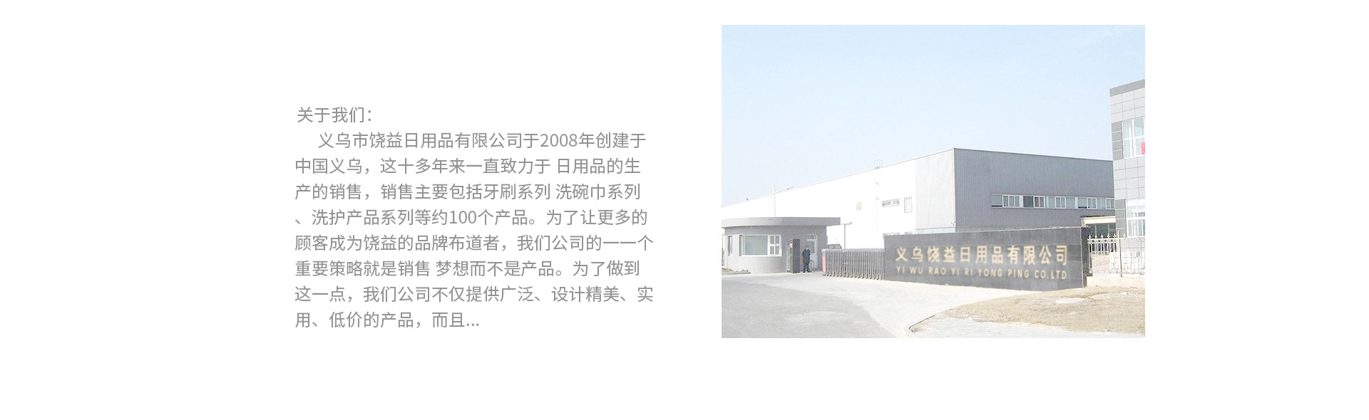 饒益(浙江)日用品有限公司是一家致力于生產(chǎn)與研發(fā)各類牙刷、個(gè)人護(hù)理、美妝設(shè)計(jì)、OEM貼牌的多元化公司,本公司占地面積5000㎡,建筑面積2000㎡,在職員工100余人,配備了20余臺(tái)先進(jìn)的生產(chǎn)設(shè)備和測量儀器,年產(chǎn)量達(dá)2000萬余件。 始終如一的把產(chǎn)品品質(zhì)、設(shè)計(jì)、客戶體驗(yàn)作為企業(yè)發(fā)展的生命線,饒益人的企業(yè)使命出自南宋謝靈運(yùn)《廬山輝源法師誄》:“廣演慈悲,饒益眾生”。真正做到饒益客戶,饒益代理,饒益員工!“RAOYI”品牌的產(chǎn)品戰(zhàn)略執(zhí)著于高追求!我們獨(dú)樹一幟的外觀設(shè)計(jì)、時(shí)尚的色彩搭配,專業(yè)的生產(chǎn)制作,秉承“始于顏值,忠于品質(zhì)”的產(chǎn)品理念,培養(yǎng)了大批精誠合作的代理和客戶群體。從微小的細(xì)節(jié)到產(chǎn)品包裝,饒益嚴(yán)格的對待每個(gè)產(chǎn)品