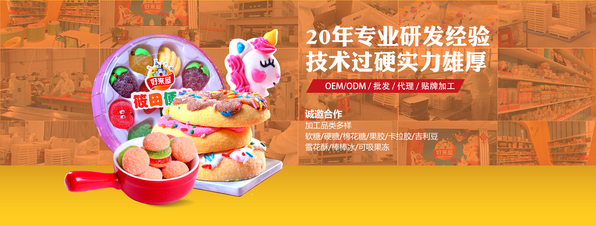好來屋公司成立于2000年,主要生產和銷售糖果,主要產品品類有橡皮糖,棉花糖,硬糖,果膠糖,棒冰,果凍等,產品內銷及出口全球,主要市場為歐美,東南亞。