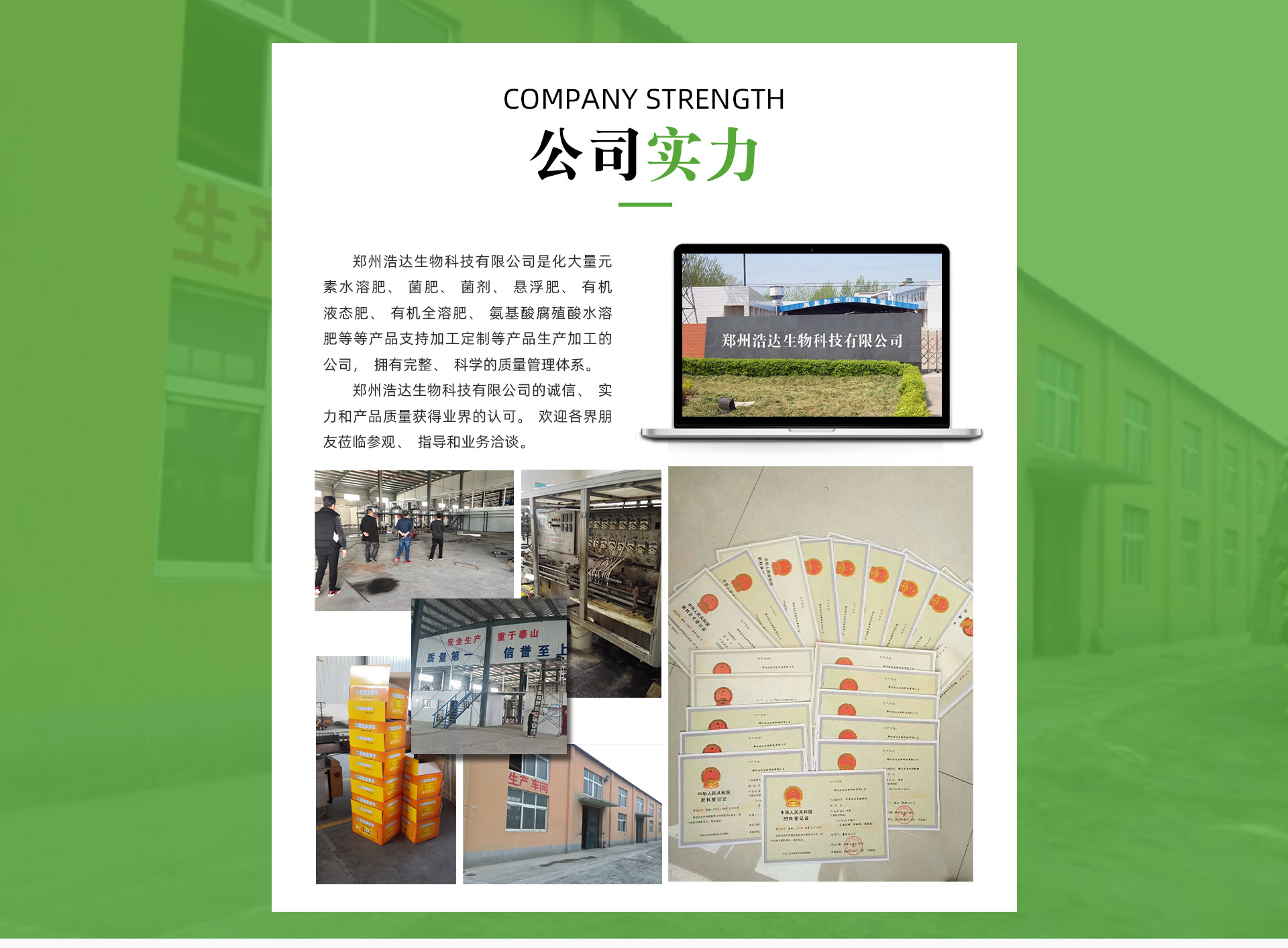 鄭州浩達(dá)生物科技有限公司是農(nóng)業(yè)部定點(diǎn)的肥料企業(yè),專注于各種高端肥料的開發(fā)研制。大量元素水溶肥、菌肥菌劑、懸浮肥、有機(jī)液態(tài)肥、有機(jī)全溶肥、氨基酸腐殖酸水溶肥,其超一流的質(zhì)量,在農(nóng)業(yè)上得到了廣泛的應(yīng)用,其產(chǎn)品以高效、優(yōu)質(zhì)、環(huán)保著稱,得到了廣大農(nóng)民的廣泛認(rèn)可。