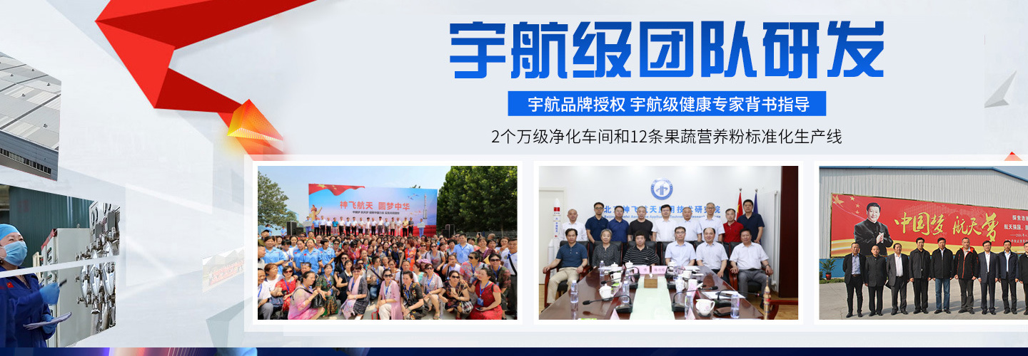 許昌神飛航天生物科技有限公司是宇航級標(biāo)準(zhǔn)民用食品的專業(yè)生產(chǎn)基地,擁有12條果蔬營養(yǎng)粉標(biāo)準(zhǔn)化生產(chǎn)線,擁有專業(yè)生產(chǎn)團(tuán)隊(duì)和先進(jìn)生產(chǎn)設(shè)備,企業(yè)通過ISO9001質(zhì)量管理體系和HACCP食品安全控制體系認(rèn)證,所生產(chǎn)的產(chǎn)品品質(zhì)更高、更安全。