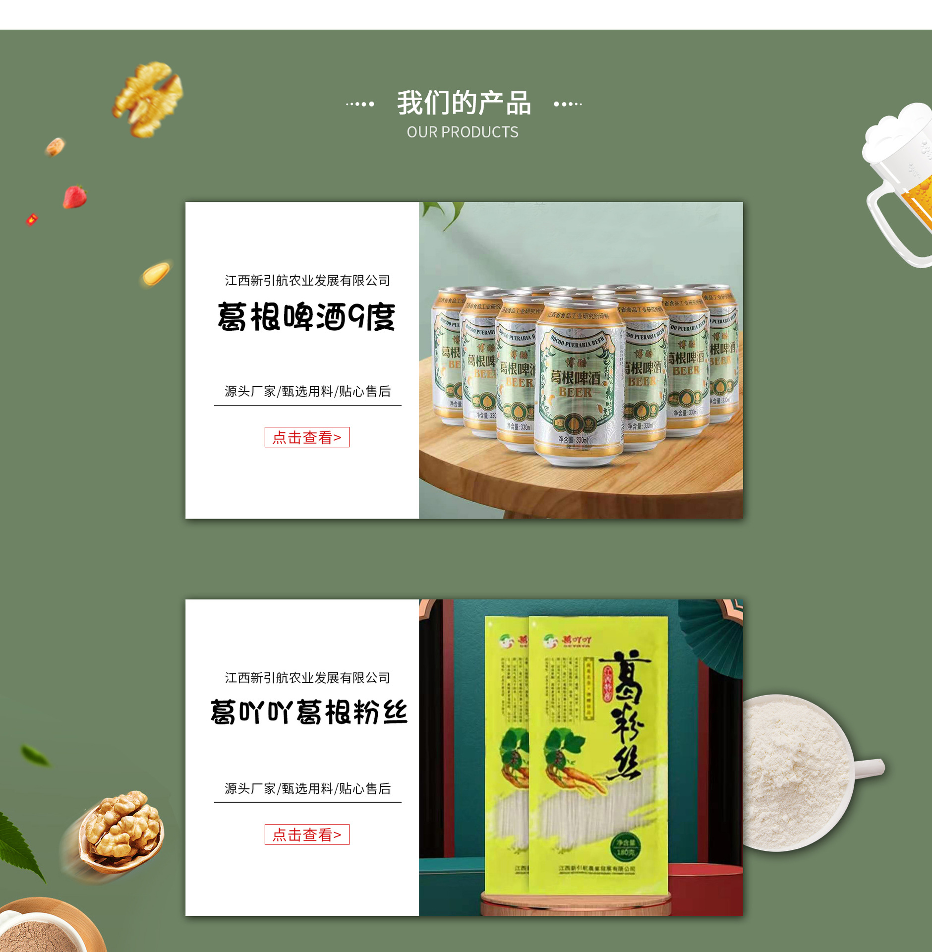 江西新引航農(nóng)業(yè)發(fā)展有限公司是葛根粉、葛根粉絲、葛根茶、葛根啤酒等產(chǎn)品專業(yè)生產(chǎn)加工的公司,擁有完整、科學的質(zhì)量管理體系。江西新引航農(nóng)業(yè)發(fā)展有限公司的誠信、實力和產(chǎn)品質(zhì)量獲得業(yè)界的認可。歡迎各界朋友蒞臨參觀、指導和業(yè)務(wù)洽談。