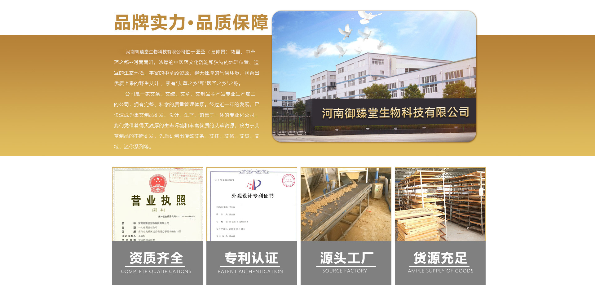 河南御臻堂生物科技有限公司是艾臍貼、艾草頸椎貼、膝蓋貼、艾草保健貼劑、艾條、艾柱、艾灸器具、艾絨等產(chǎn)品專業(yè)生產(chǎn)加工的公司,擁有完整、科學(xué)的質(zhì)量管理體系。南陽豐茸艾草科技有限公司的誠信、實力和產(chǎn)品質(zhì)量獲得業(yè)界的認(rèn)可。歡迎各界朋友蒞臨參觀、指導(dǎo)和業(yè)務(wù)洽談