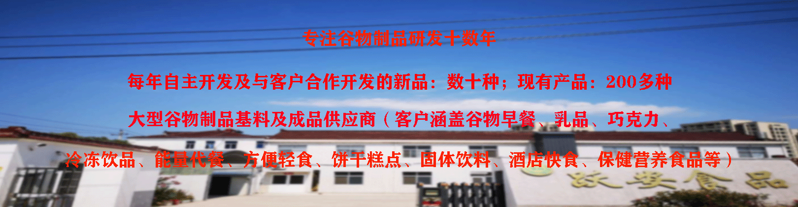 高品質(zhì)、天然、營養(yǎng)、健康型熟化谷物制品是躍安食品公司的主導(dǎo)產(chǎn)品,是迎合當(dāng)今社會健康潮流的優(yōu)質(zhì)食品配料。躍安食品以專業(yè)的開發(fā)技術(shù)優(yōu)勢(每年根據(jù)營養(yǎng)學(xué)考量及客戶要求開發(fā)的新品有數(shù)十種)和制造設(shè)施優(yōu)勢,以五谷雜糧、果蔬和藥食兼用植物為原料,采用先進(jìn)的瞬時熟化、殺菌技術(shù),在極短時間將谷物等熟化、干燥。該類產(chǎn)品特點(diǎn)是具有豐富的營養(yǎng)、天然的特征風(fēng)味,非常適合營養(yǎng)健康、方便快捷、善待味蕾的現(xiàn)代生活方式。