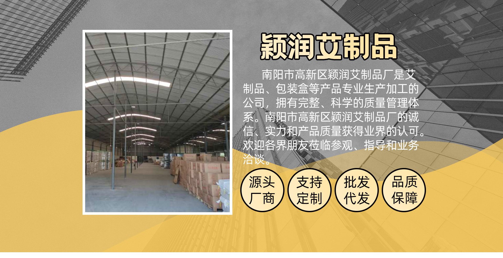 南陽市穎潤艾制品廠主要生產(chǎn)銷售肚臍貼 肚臍丸 泡腳包 足浴液 艾條 艾柱等艾制品的源頭廠家 公司旗下品牌艾比神 公普堂 穎潤艾葉 日產(chǎn)百萬質(zhì)優(yōu)價廉 支持加工貼牌