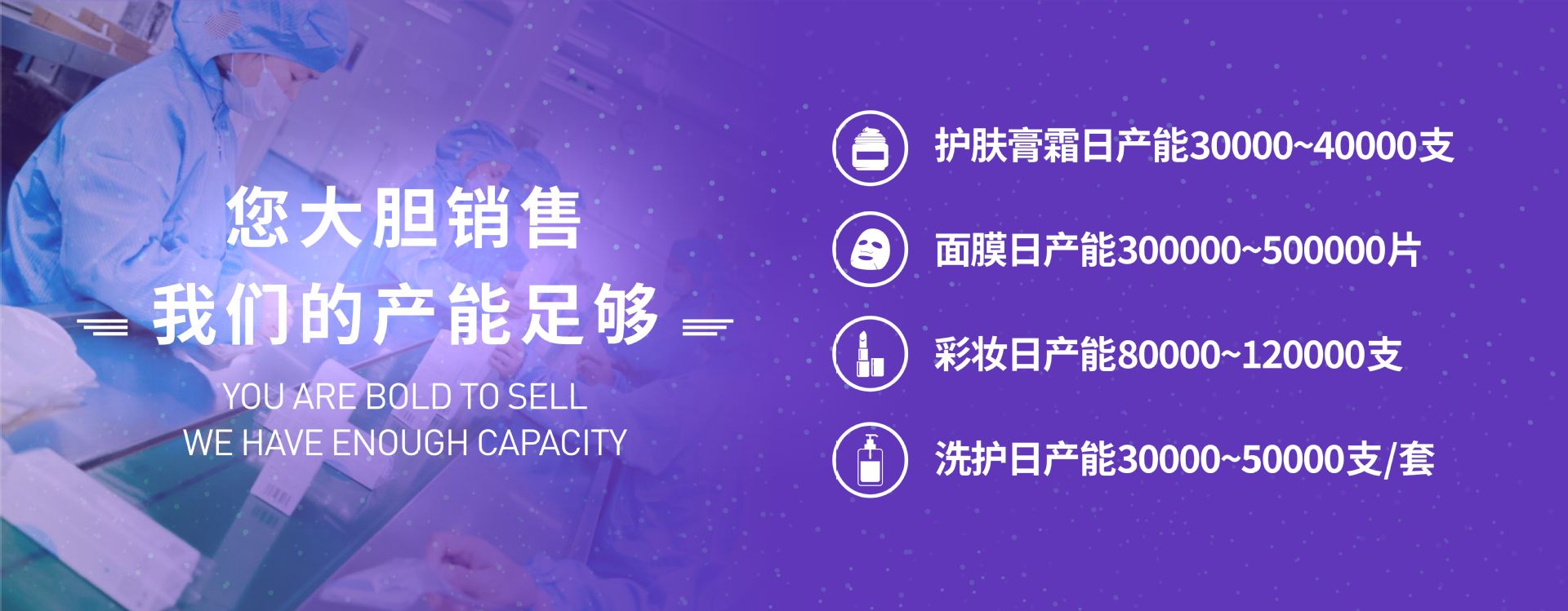 公司集產(chǎn)品研發(fā),生產(chǎn),銷售,服務于一體,為客戶提供 OEM/ODM/OBM一站式服務,涵蓋產(chǎn)品規(guī)劃、配方開發(fā)、包裝設計、功效測試、乳化、灌裝、 包裝、倉儲物流等全方位服務。秉承“創(chuàng)新、共贏”的核心價值 觀,以“創(chuàng)造客戶市場價值,推動行業(yè) 持續(xù)發(fā)展”為己任,堅持“質(zhì)量第一、服務為先、 效率至上”的管理理念,提供“貼心、精心、 耐心”的服務,不斷進行技術創(chuàng)新,研發(fā)安全有 效的高品質(zhì)產(chǎn)品,為客戶實現(xiàn)品牌價值和市場 價值。