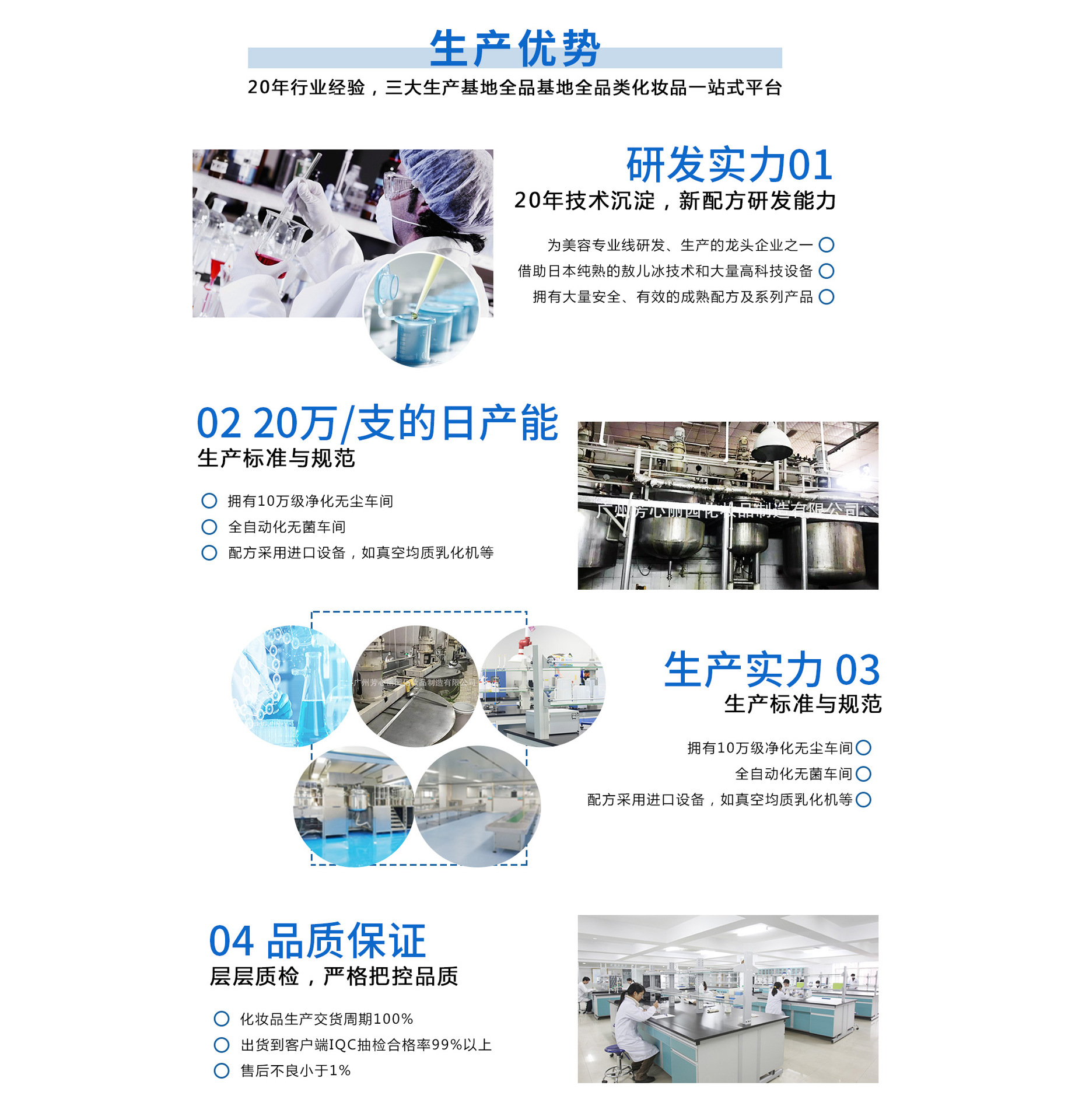 廣州芳心麗園化妝品制造有限公司作為美容專業(yè)線研發(fā)、生產(chǎn)的龍頭企業(yè)之一,與各大品牌多年的合作,沉淀了認(rèn)真、細(xì)致、負(fù)責(zé)、進(jìn)取的企業(yè)文化,培養(yǎng)了大批研發(fā)、生產(chǎn)技術(shù)人員,配合大量現(xiàn)金的生產(chǎn)及檢測(cè)設(shè)備,擁有大量安全、有效的成熟配方及系列產(chǎn)品。我們還能提供品牌設(shè)計(jì)、產(chǎn)品配套、 廣州芳心麗園化妝品制造有限公司的誠(chéng)信、實(shí)力和產(chǎn)品質(zhì)量獲得業(yè)界的認(rèn)可. 歡迎各界朋友蒞臨參觀、指導(dǎo)和業(yè)務(wù)洽談!