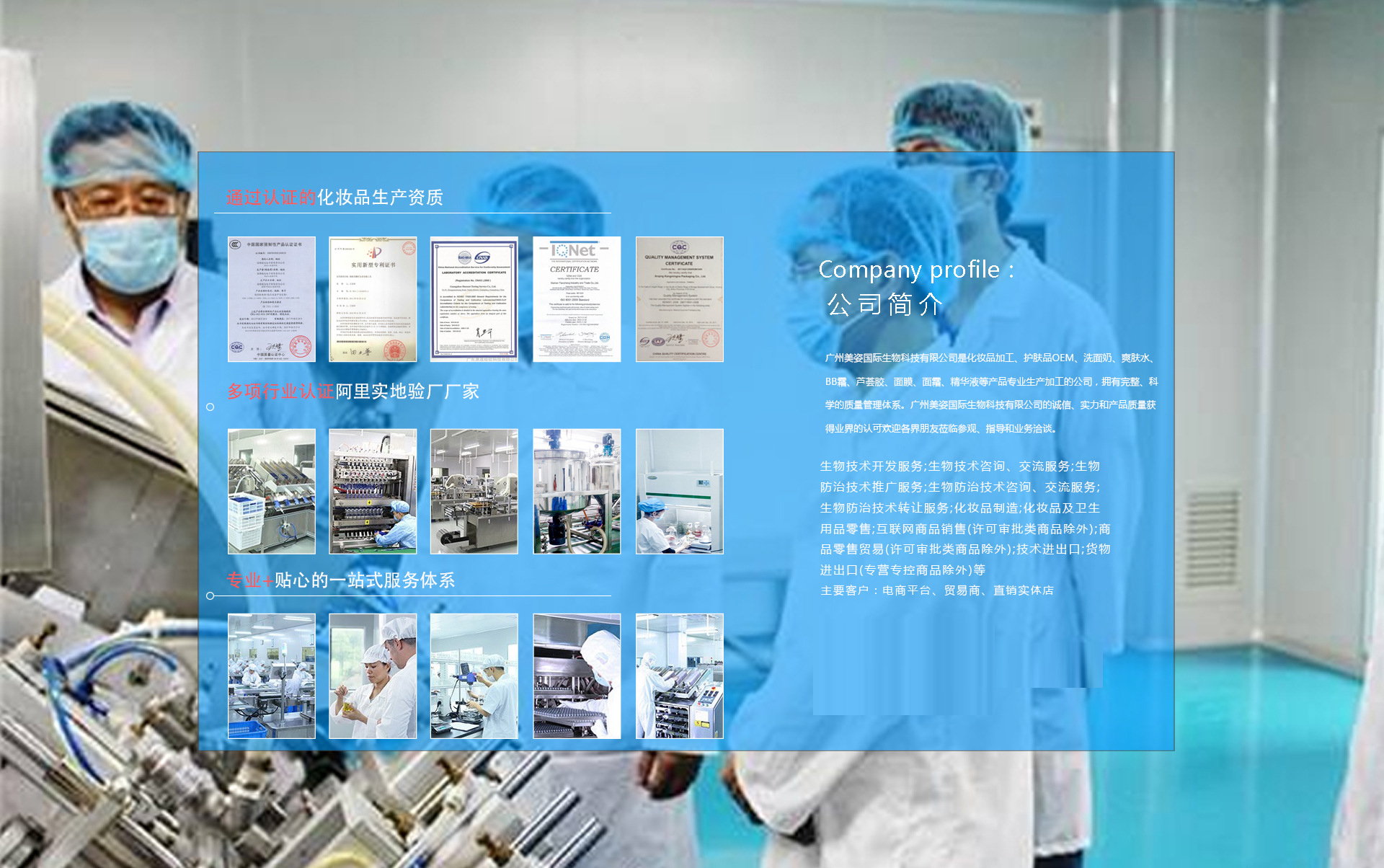 廣州美姿國際生物科技有限公司是化妝品加工、護(hù)膚品OEM、洗面奶、爽膚水、BB霜、蘆薈膠、面膜、面霜、精華液等產(chǎn)品專業(yè)生產(chǎn)加工的公司,擁有完整、科學(xué)的質(zhì)量管理體系。廣州美姿國際生物科技有限公司的誠信、實力和產(chǎn)品質(zhì)量獲得業(yè)界的認(rèn)可。歡迎各界朋友蒞臨參觀、指導(dǎo)和業(yè)務(wù)洽談。