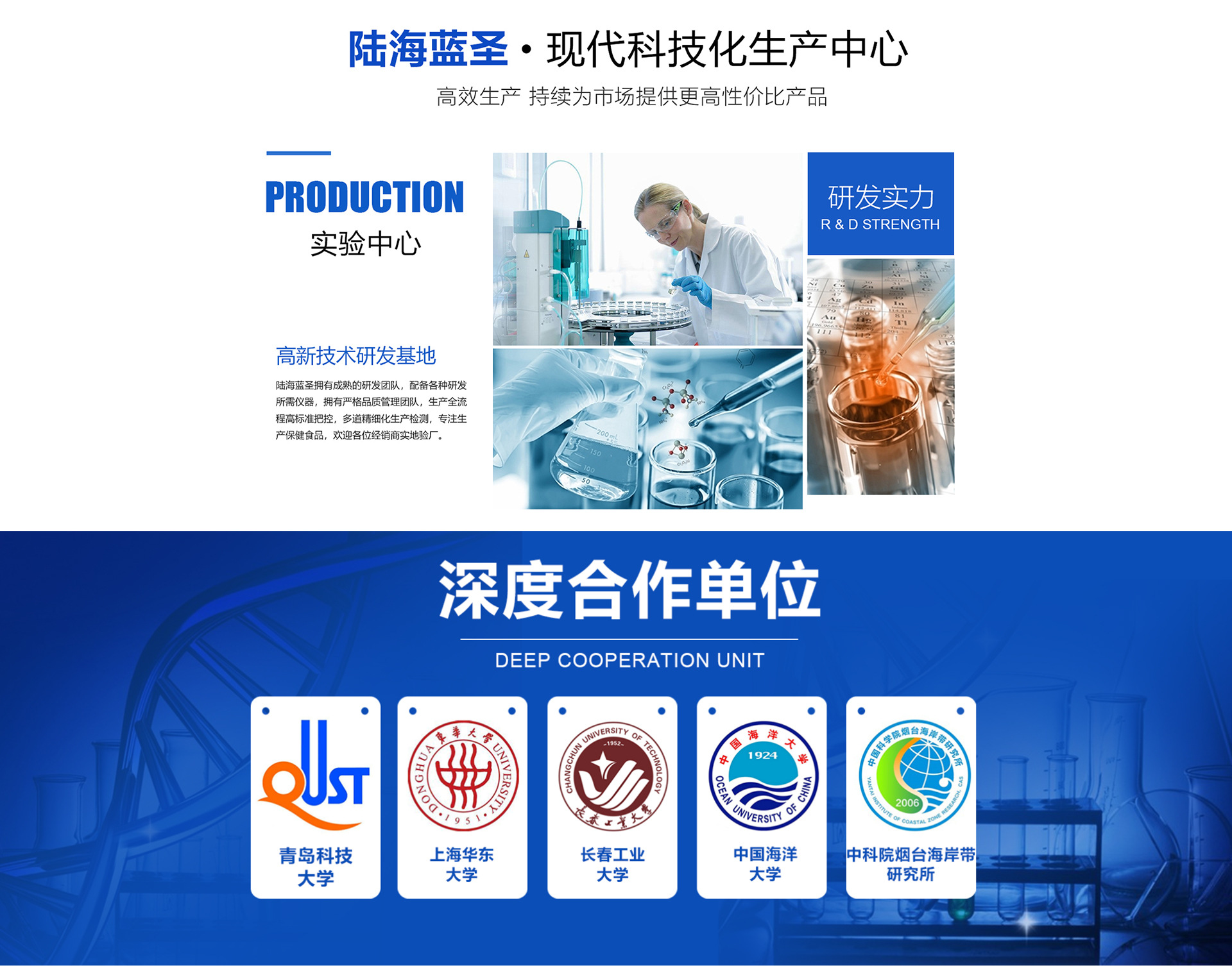 山東陸海藍(lán)圣生物科技股份有限公司,位于中國黃河入??谌侵薜闹行某鞘?東營市,注冊資金2億2千萬元整,是一家從事研發(fā)、生產(chǎn)、加工、銷售于一體的生物高新技術(shù)產(chǎn)業(yè),擁有10萬級無塵凈化車間,生產(chǎn)線涵蓋粉劑、片劑、膠囊、固體飲料等多條生產(chǎn)線,覆蓋了國內(nèi)的第三終端、連鎖藥店、線上直播自媒體等多個(gè)銷售渠道,同時(shí)與上海東華大學(xué)等高等院校密切合作,為集團(tuán)提供政策、管理、營銷、研發(fā)的高端服務(wù)。